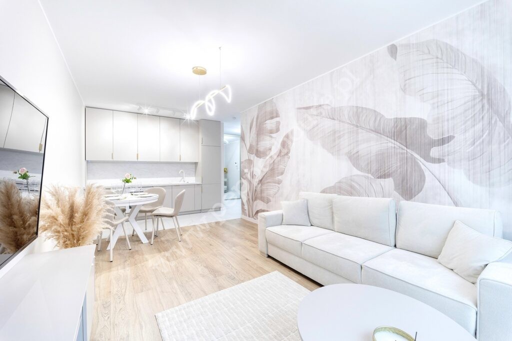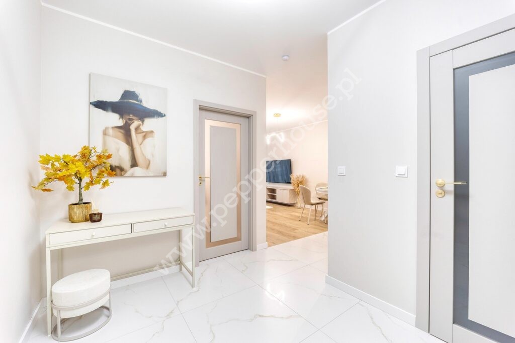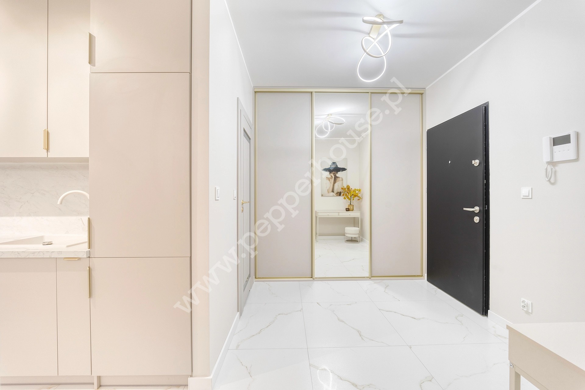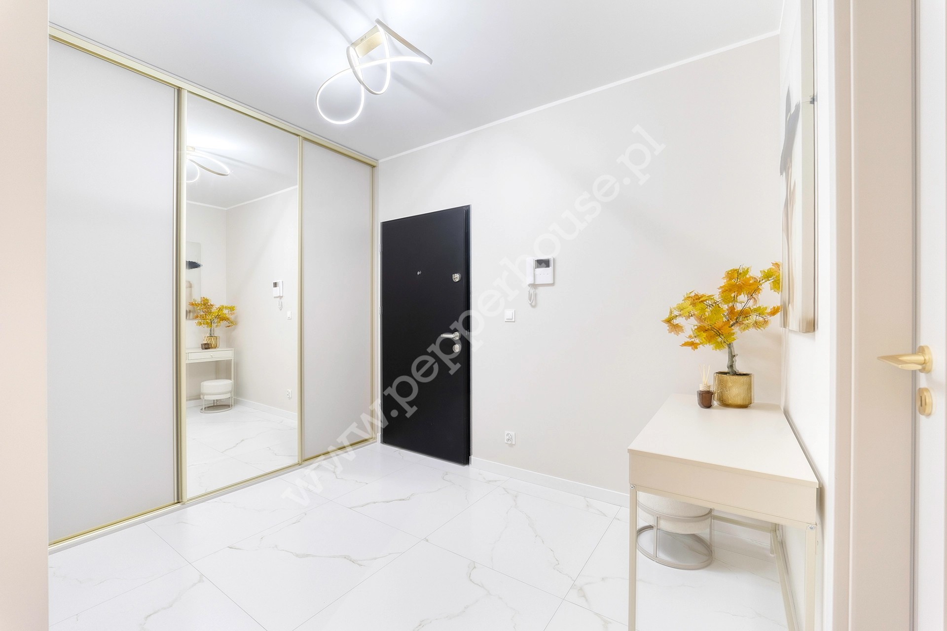 Na sprzedaż 2 pokojowy apartament z ogródkiem ulokowany w nowej inwestycji uznanego dewelopera LEM-BUD -osiedle Panorama Wiślana! Mieszkanie cechuje się wykończeniem materiałami wysokiej jakości, z dbałością o każdy detal. Zabudowa kuchenna oraz szafy w zabudowie w sypialni i przedpokoju robione na wymiar przez zaufanego stolarza, nowe meble i sprzęty AGD (lodówka, płyta indukcyjna, okap, zmywarka). Przemyślany projekt wnętrza, w którym zadbano o każdy szczegół, tworzy harmonijną i funkcjonalną przestrzeń. Połączenie ciepłych beży, naturalnego drewna, nowoczesnego oświetlenia i gustownych dodatków tworzy poczucie przytulności, przy zachowaniu przestronności pomieszczeń.