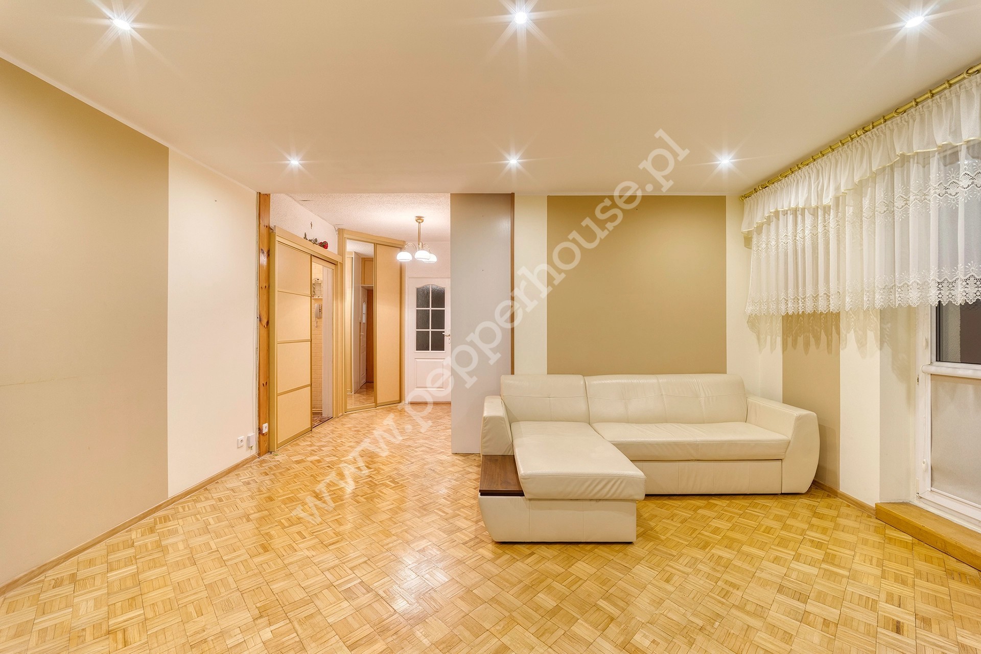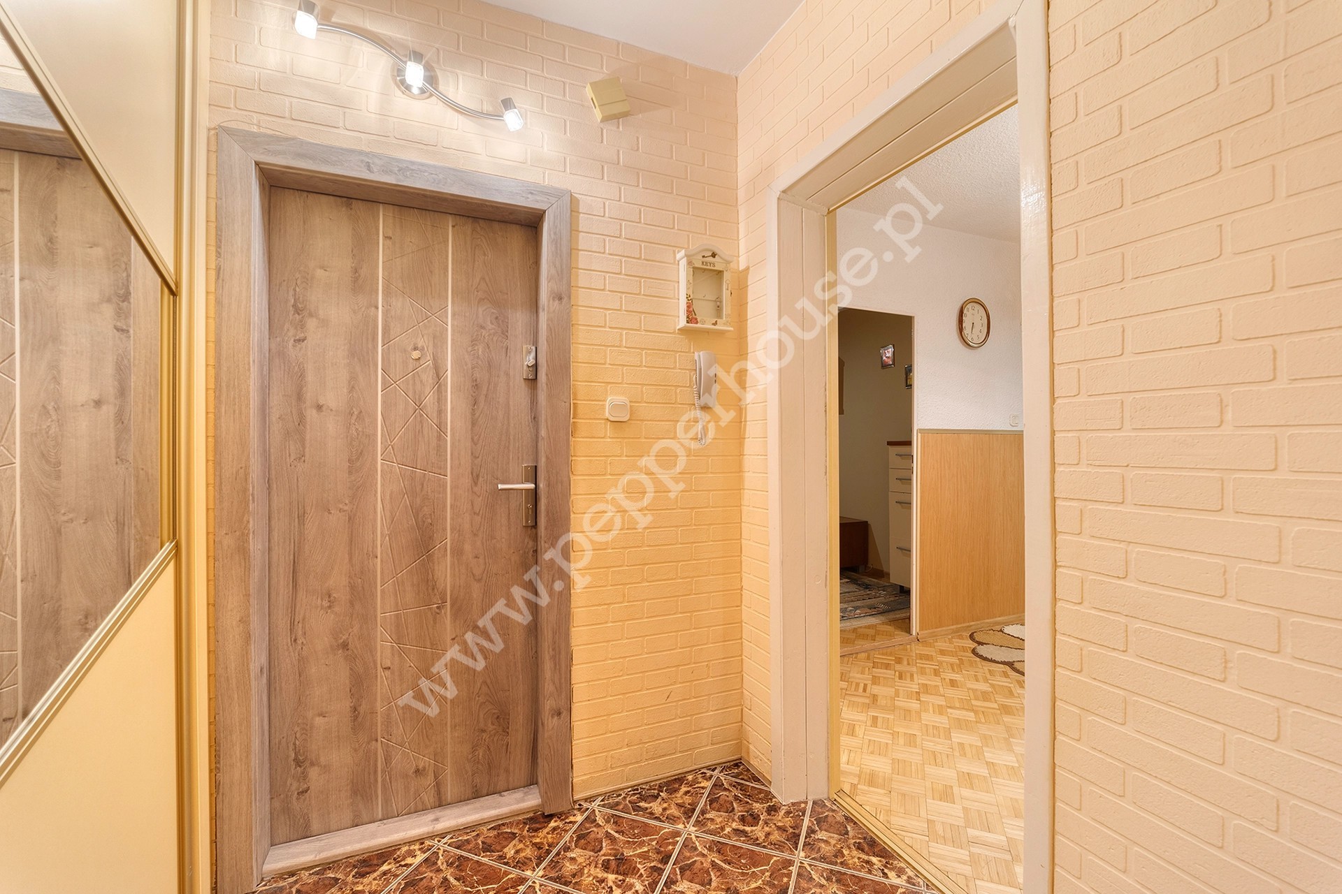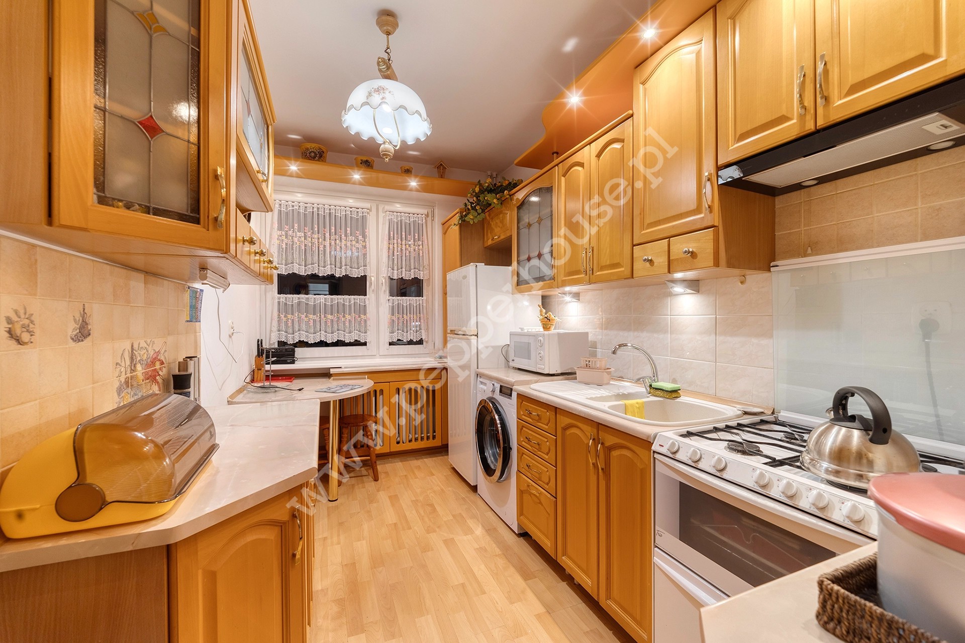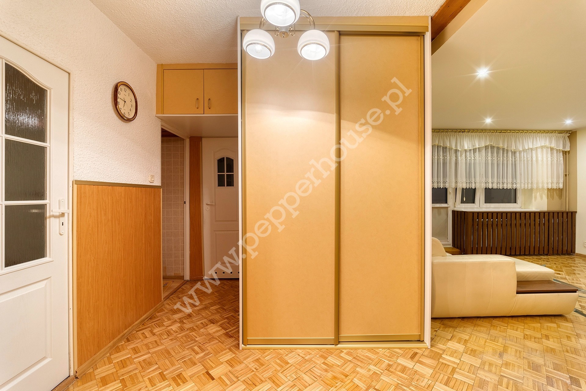 Mieszkanie ok. 63,5 m2 znajduję się na 3 piętrze bloku mieszkalnego. Na podłogach znajdziemy parkiet oraz kafle. Ściana pomiędzy salonem, a przedpokojem została wyburzona, co daje nam ponad 26 m2 otwartej przestrzeni. Dodatkowo mamy dwie oddzielne sypialnie i pełnoprawną kuchnię z drewnianymi meblami. Łazienka z wanną. W lokalu pozostaje pełne wyposażenie widoczne na zdjęciach, gdzie warto zwrócić uwagę na aż 4 pakowne szafy.