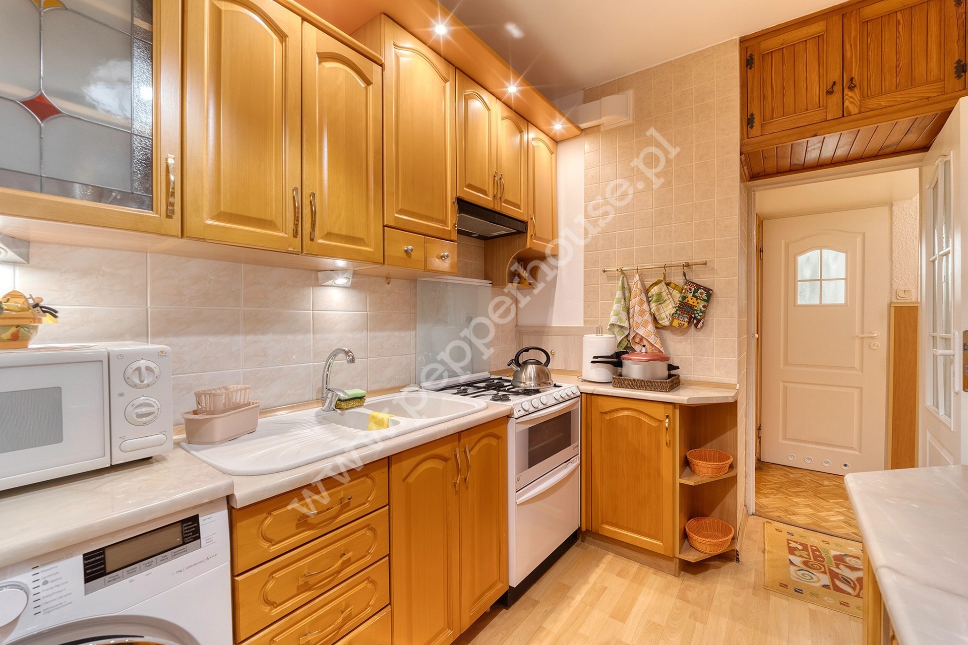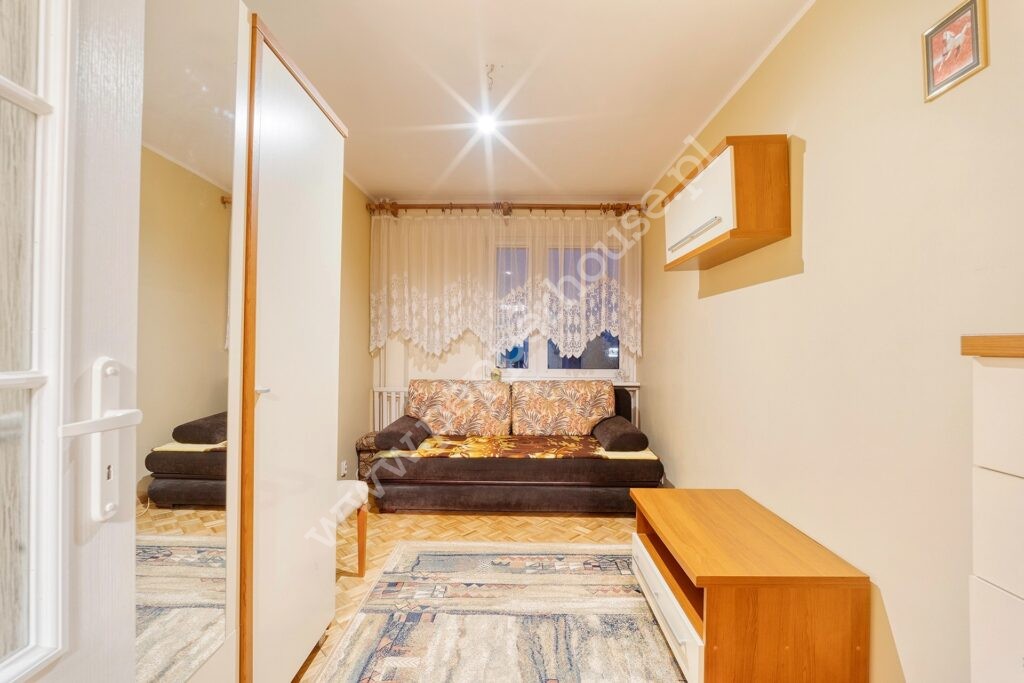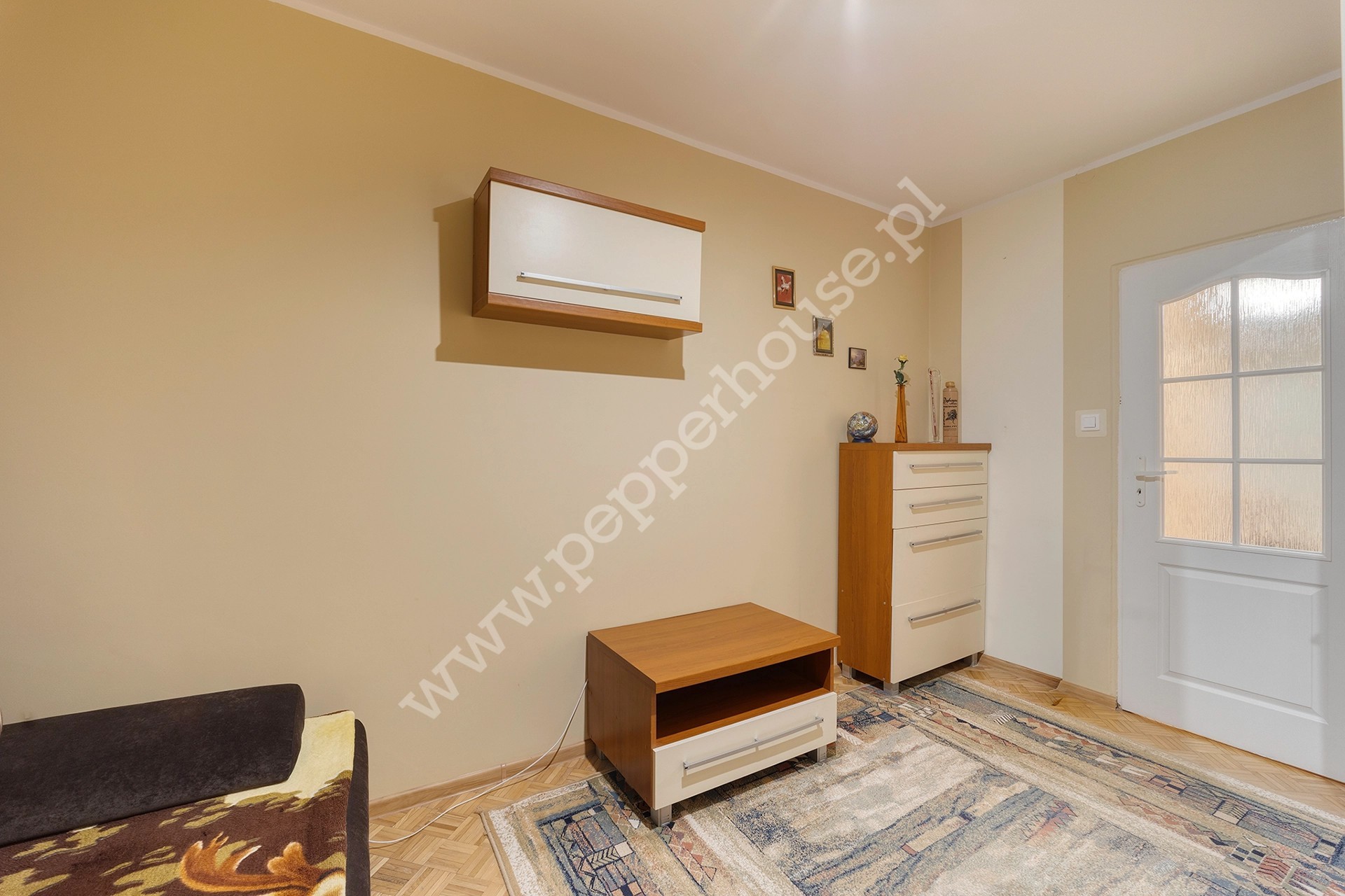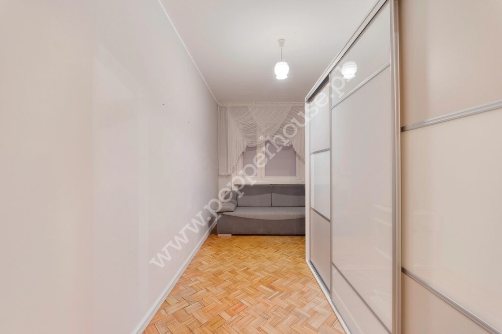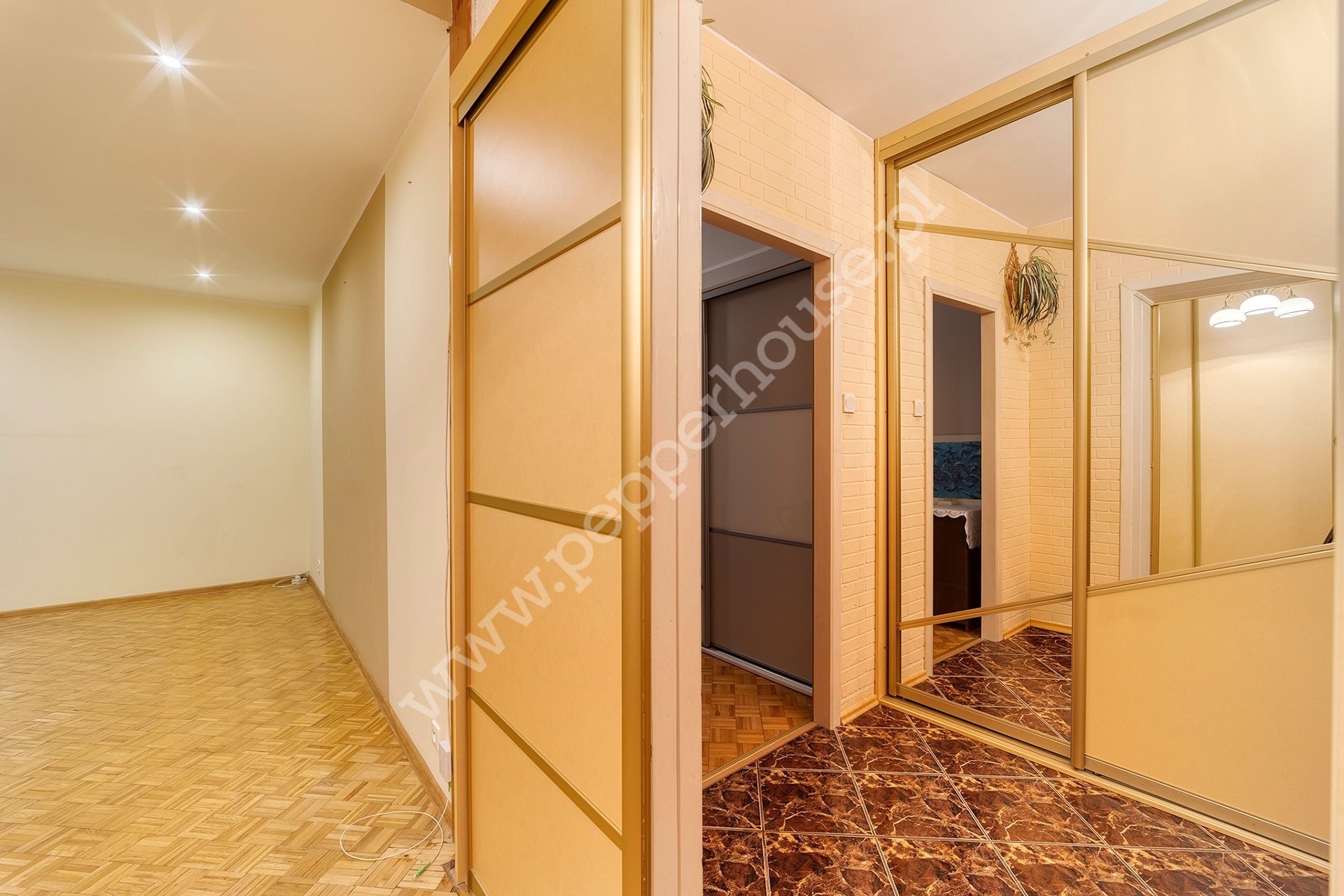 Mieszkanie ok. 63,5 m2 znajduję się na 3 piętrze bloku mieszkalnego. Na podłogach znajdziemy parkiet oraz kafle. Ściana pomiędzy salonem, a przedpokojem została wyburzona, co daje nam ponad 26 m2 otwartej przestrzeni. Dodatkowo mamy dwie oddzielne sypialnie i pełnoprawną kuchnię z drewnianymi meblami. Łazienka z wanną. W lokalu pozostaje pełne wyposażenie widoczne na zdjęciach, gdzie warto zwrócić uwagę na aż 4 pakowne szafy.