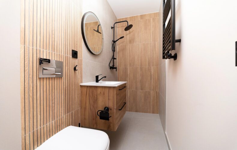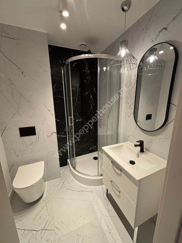 – Łazienka – wyposażona w prysznic, umywalkę, WC.