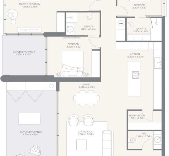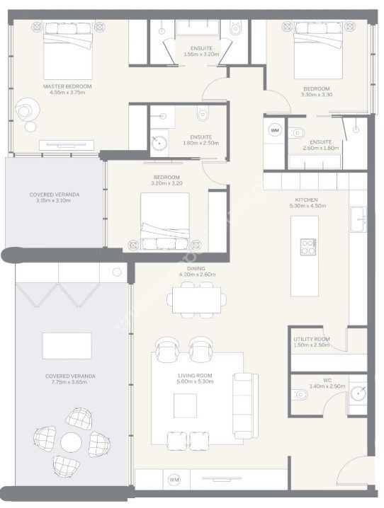 2 łazienki en-suite oraz 1 łazienka ogólna