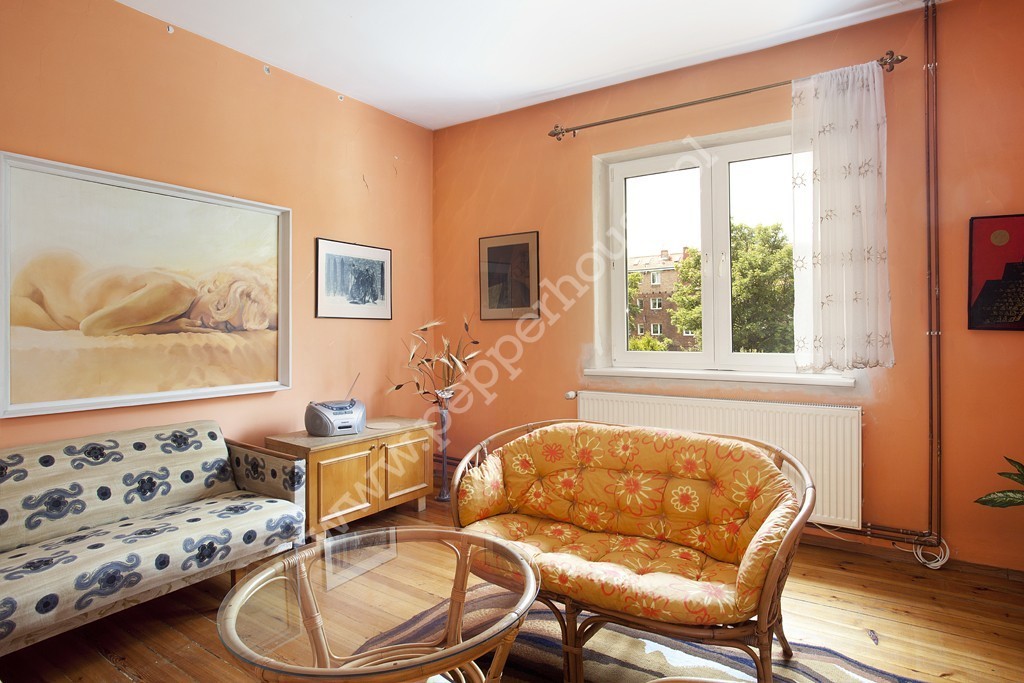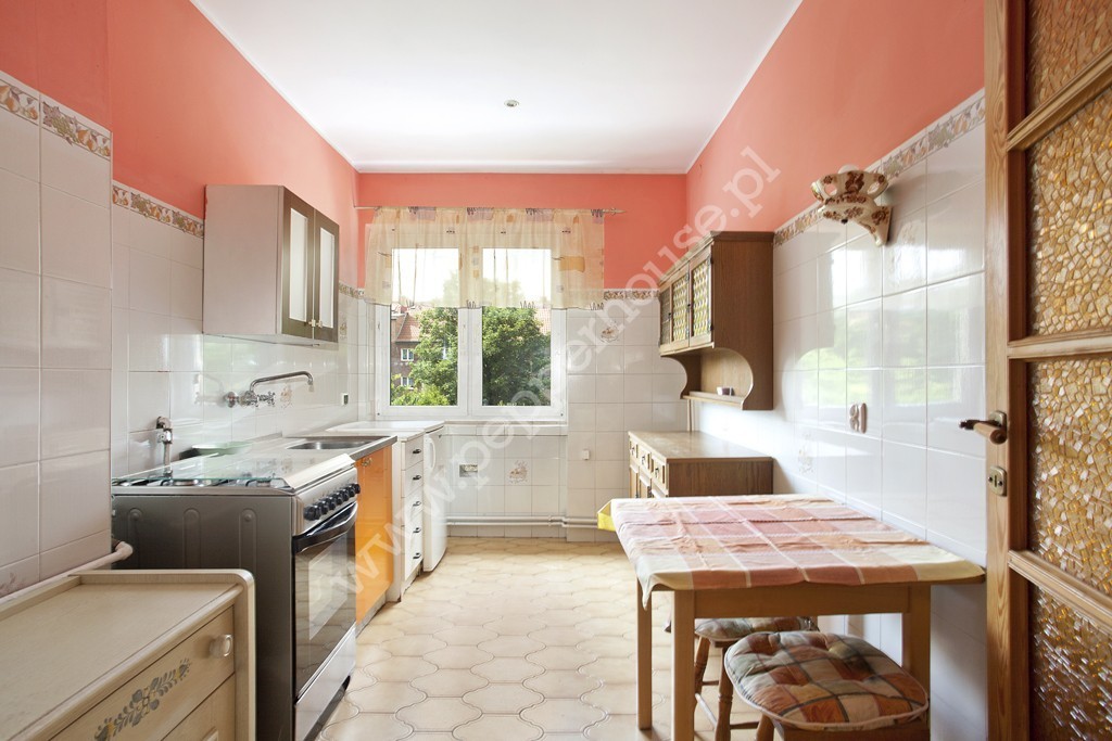 Mieszkanie o powierzchni 74,84 me składa się z dwóch poziomów. Na dole (51m2) znajdują się dwa przestronne i jasne pokoje (jeden z balkonem), niezależna kuchnia z oknem, duża łazienka oraz funkcjonalny przedpokój. Na górze zaaranżowana jest duża sypialnia.. Do mieszkania przynależy piwnica (około 10m2). Mieszkanie przestronne, zadbane, a trójstronna ekspozycja sprawia, że jest dobrze oświetlone i słoneczne. Okna pcv, nowy piec dwufunkcyjny.