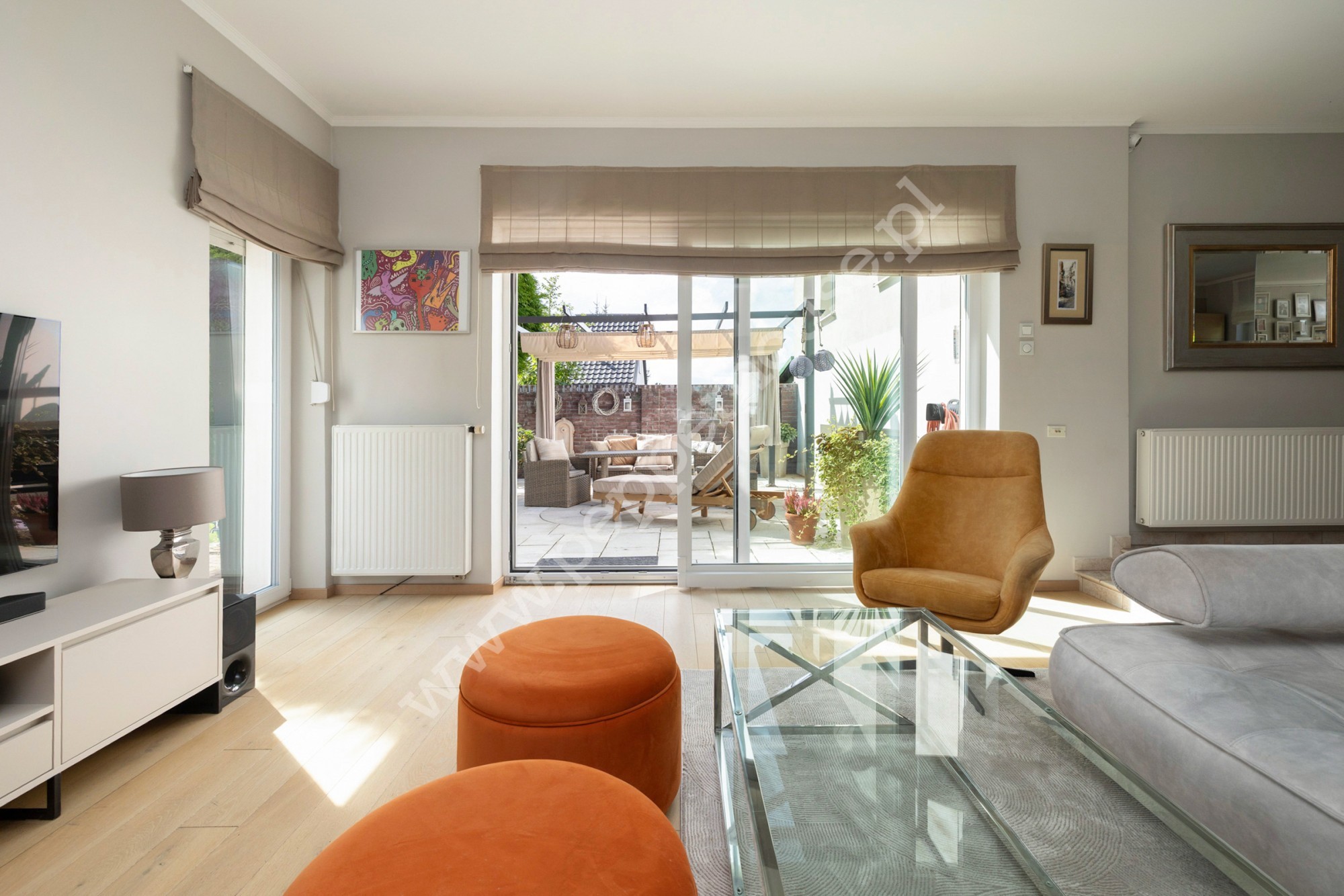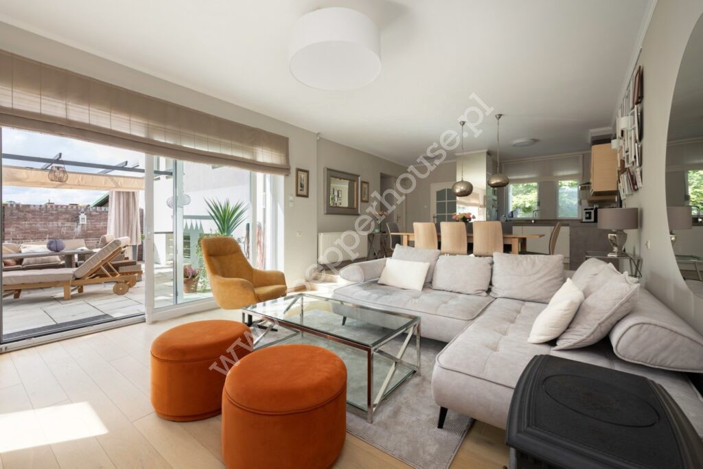 – przestronny salon z aneksem kuchennym oraz wyjściem na słoneczny taras i ogród,