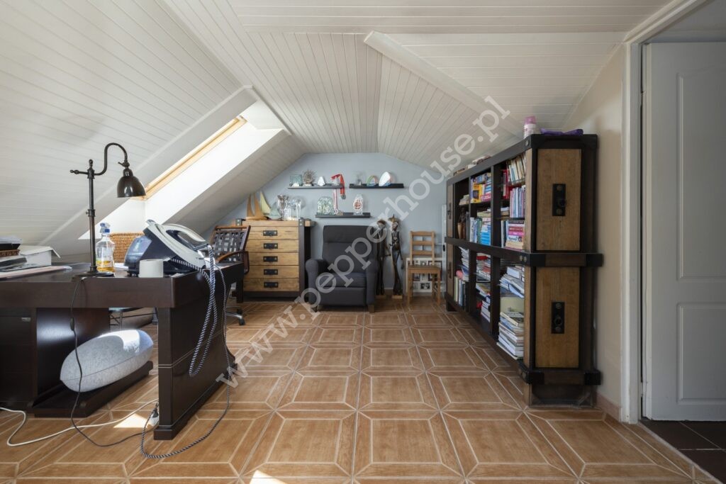 – zaadaptowane poddasze – dodatkowa przestrzeń idealna na pokój hobby, bawialnię lub przechowywanie,