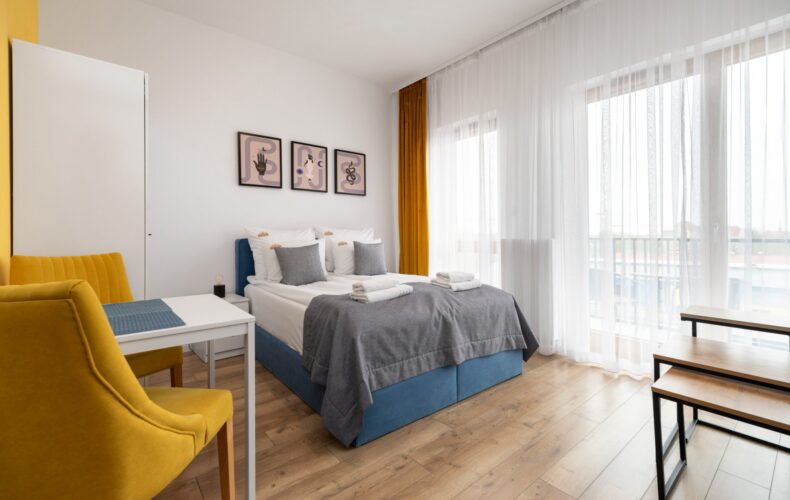 Ustawne, niewielkie, dwupokojowe mieszkanie o ekspozycji wschodniej. Na wprost od wejścia znajduje się przestronny, bardzo dobrze doświetlony dzięki dużym przeszkleniom, pokój dzienny z aneksem kuchennym. Z salonu można wyjść do ogródka o pow. ok. 20m2. Z salonem sąsiaduje wygodna sypialnia. W mieszkaniu zaprojektowano wygodną łazienkę oraz miejsce na zabudowę szafą.
