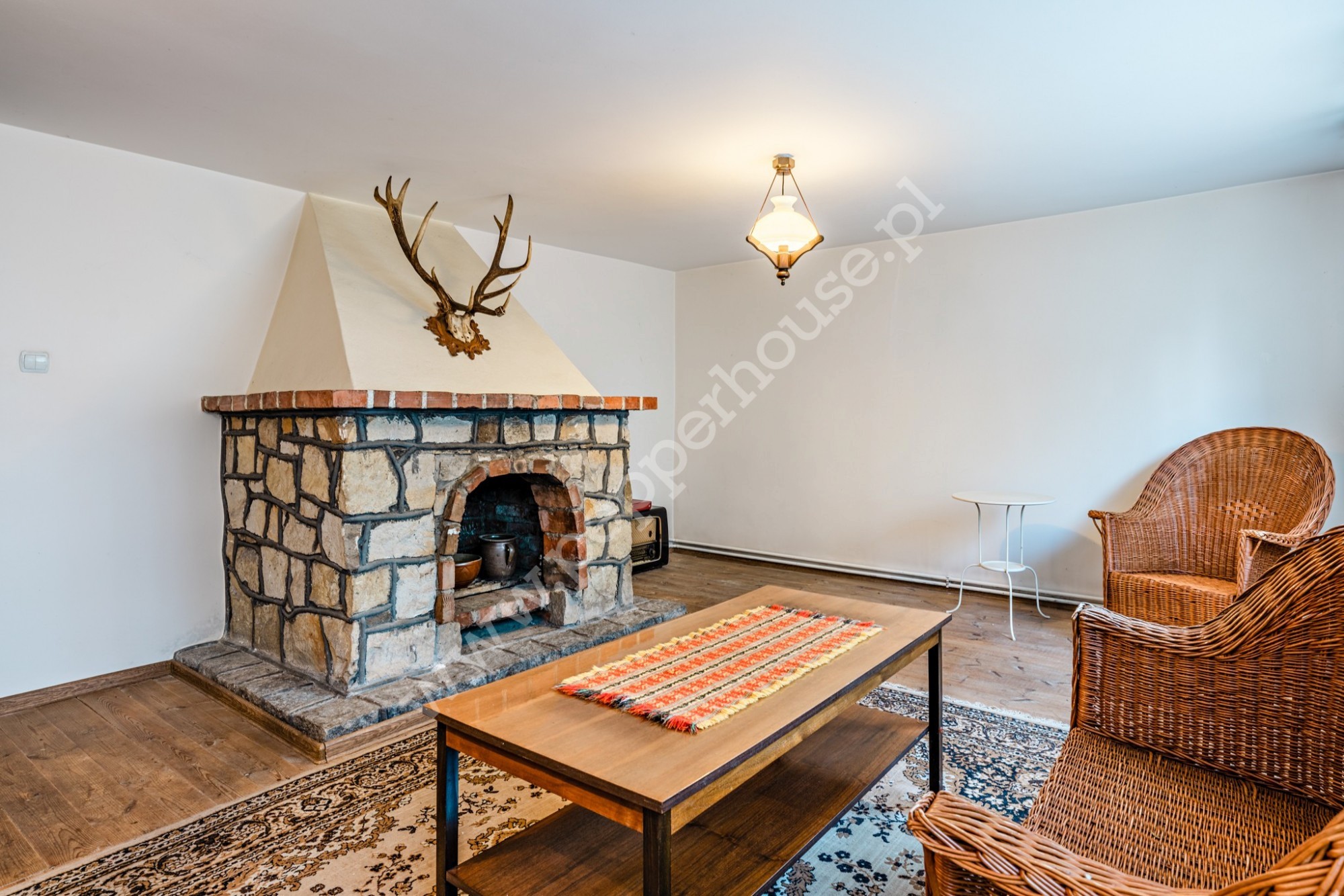 Przyziemie – Pokój z kominkiem, pralnia, kuchnia, spiżarka