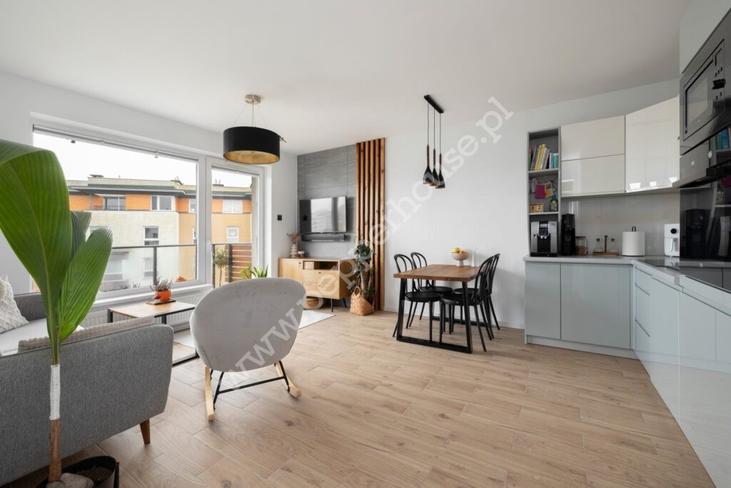 – pokoju dziennego z aneksem kuchennym, z wyjściem na słoneczny balkon,