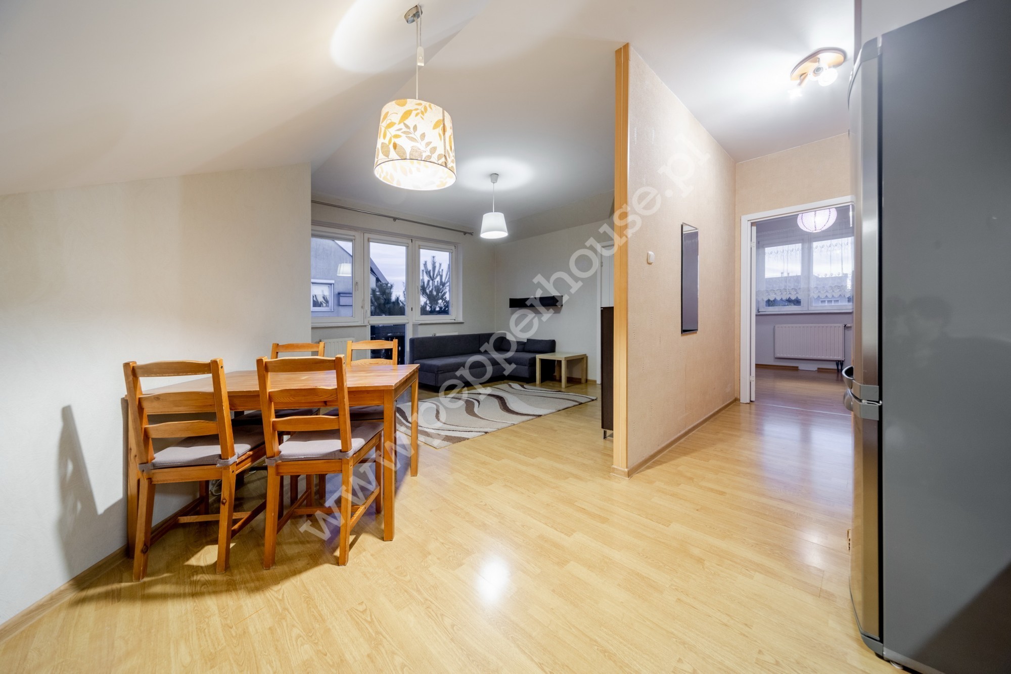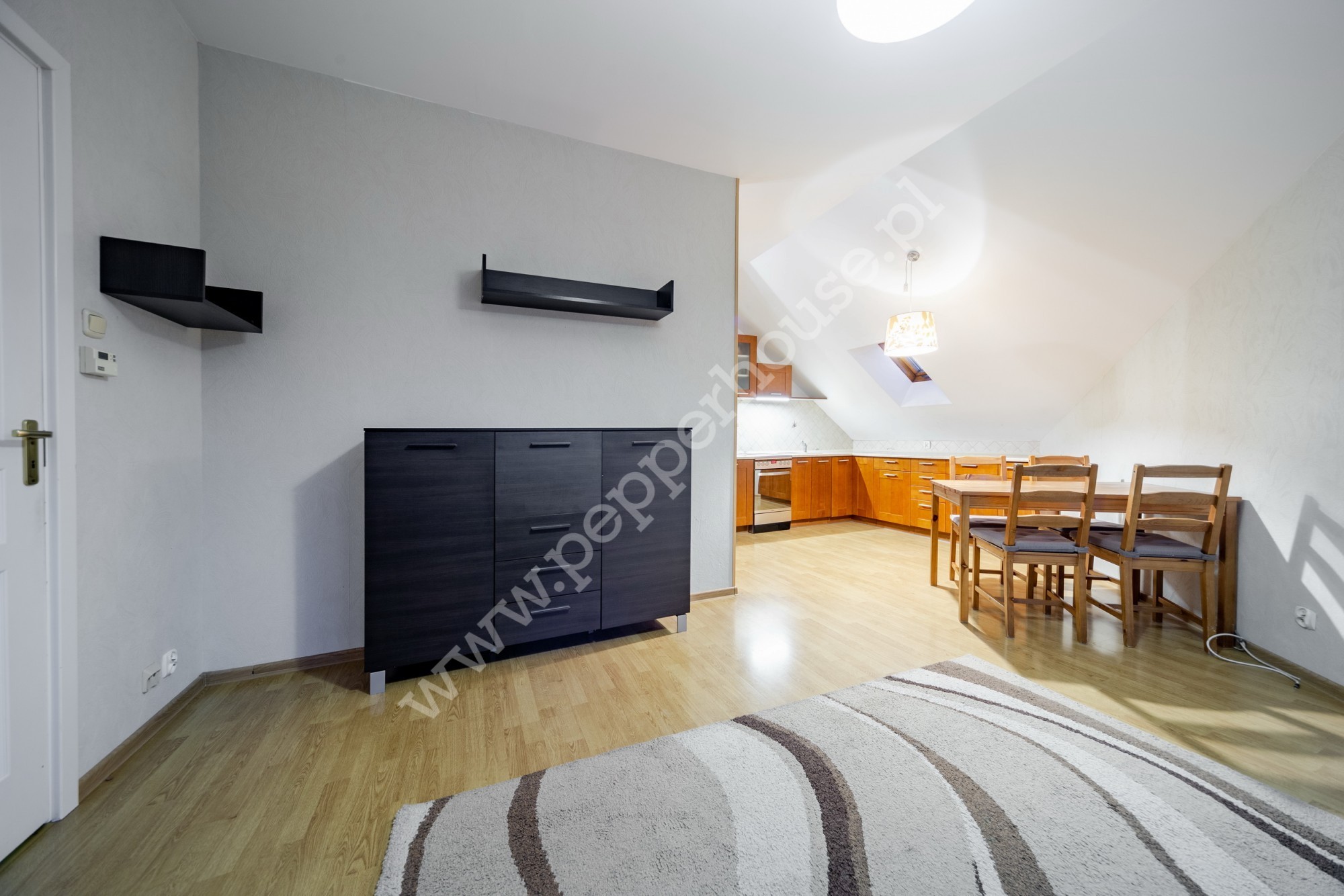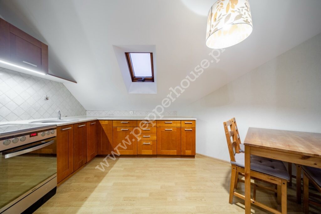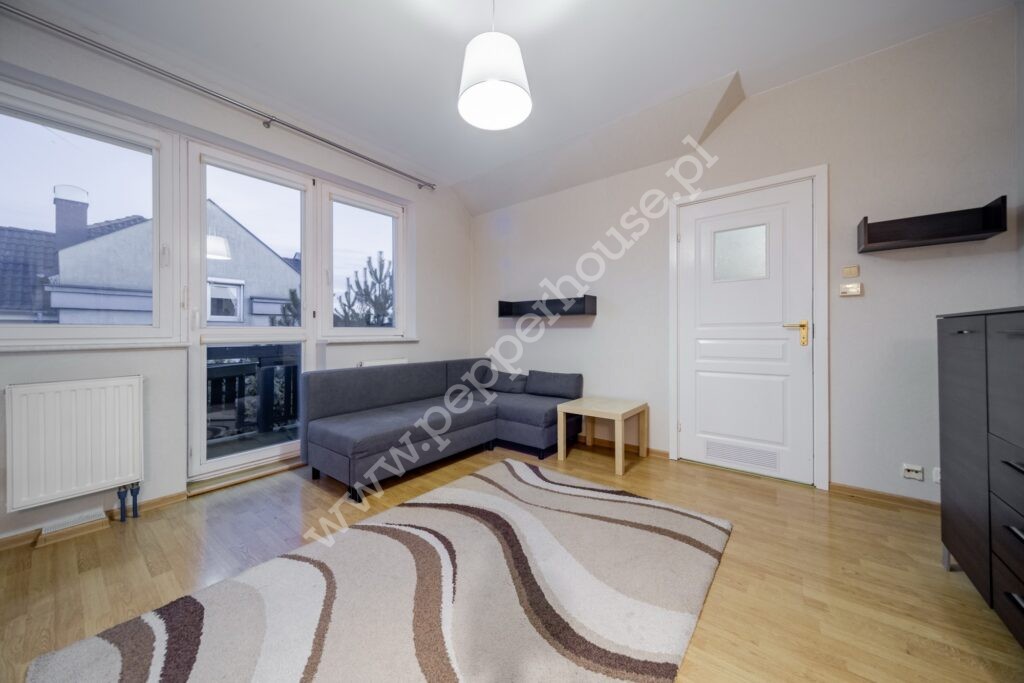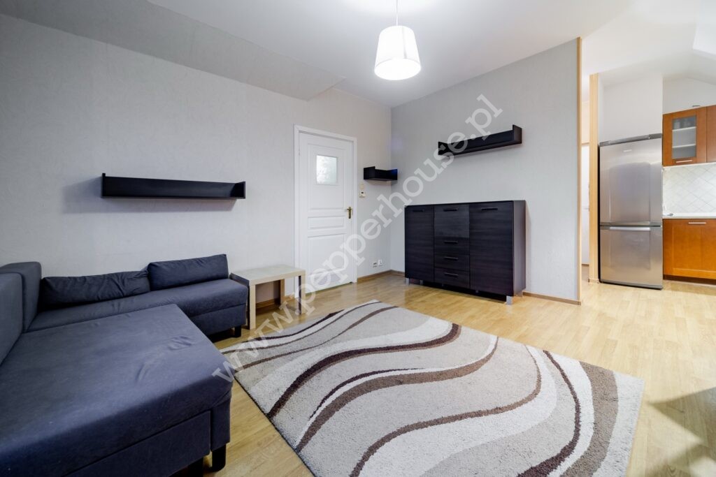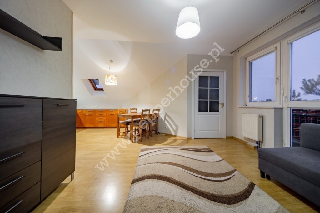 – przestronnego salonu z aneksem kuchennym z bezpośrednim wyjściem na balkon