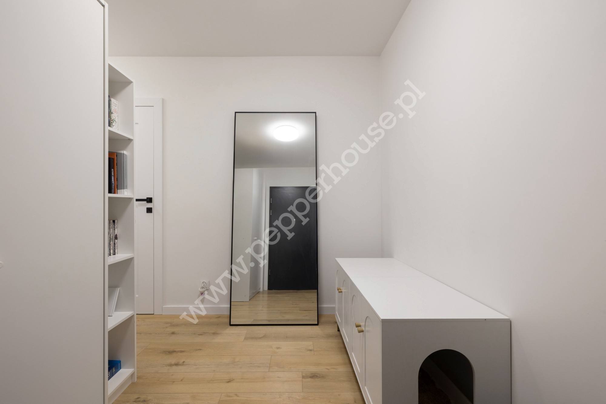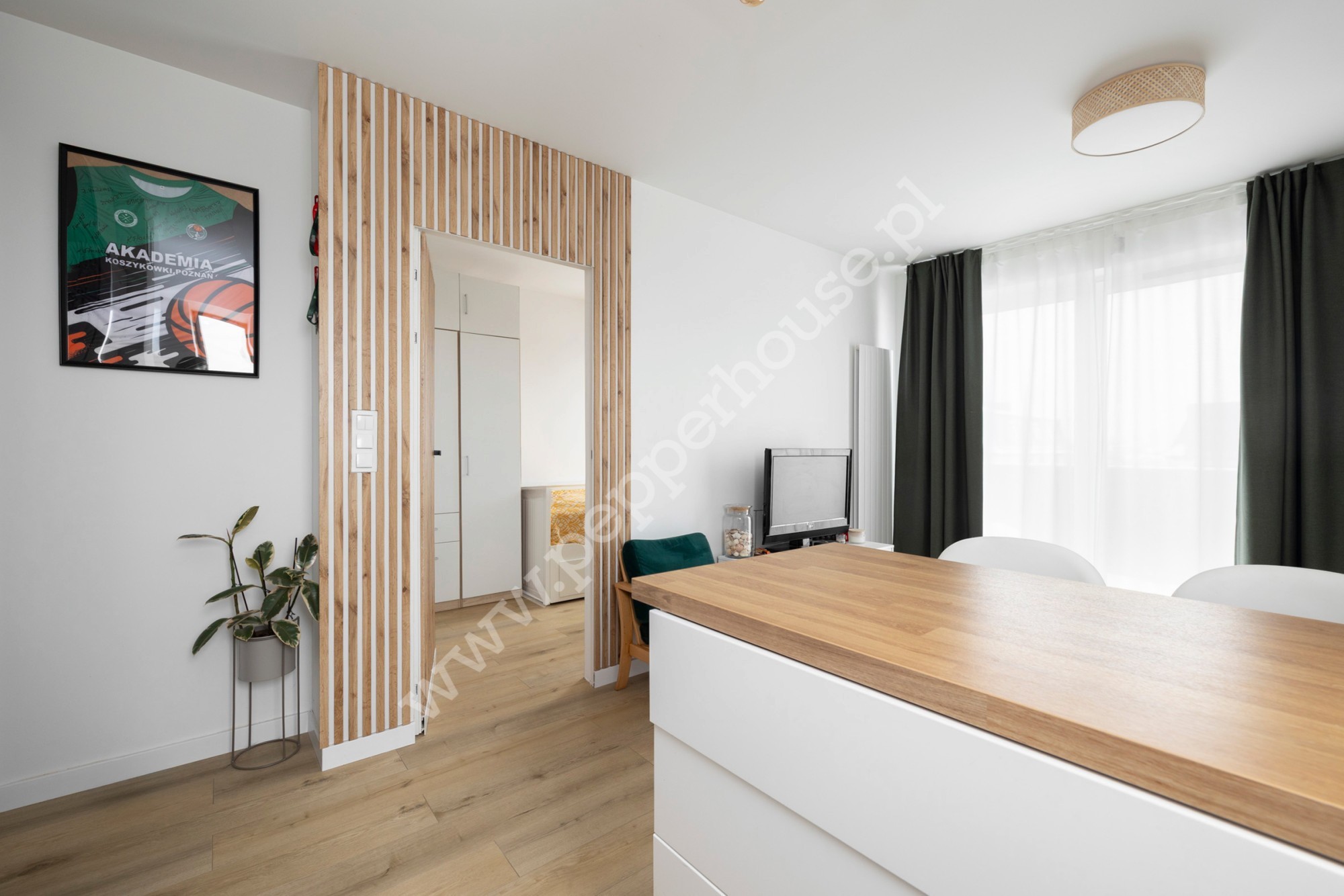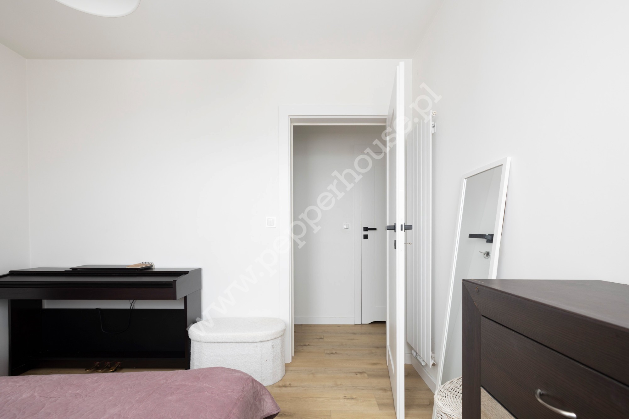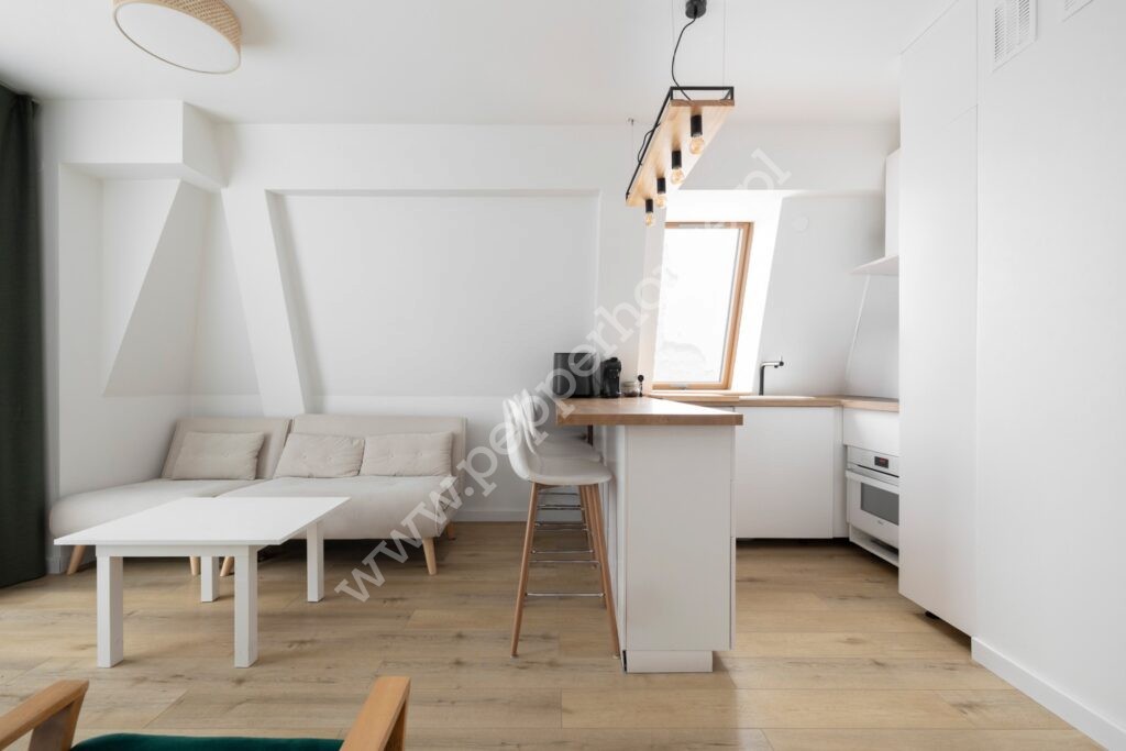 Słoneczne i nowoczesne mieszkanie 3-pokojowe położone w czteroletnim budynku na nowoczesnym osiedlu zabezpieczonym szlabanem. Rzeczywista powierzchnia całkowita ze względu na skosy – 47,7 m2. Lokal charakteryzuje się przemyślanym układem, który maksymalnie wykorzystuje dostępną przestrzeń. Kuchnia została w pełni wyposażona w nowoczesny sprzęt AGD (lodówka, zmywarka, płyta indukcyjna z wbudowanym okapem oraz piekarnik z funkcją mikrofali).