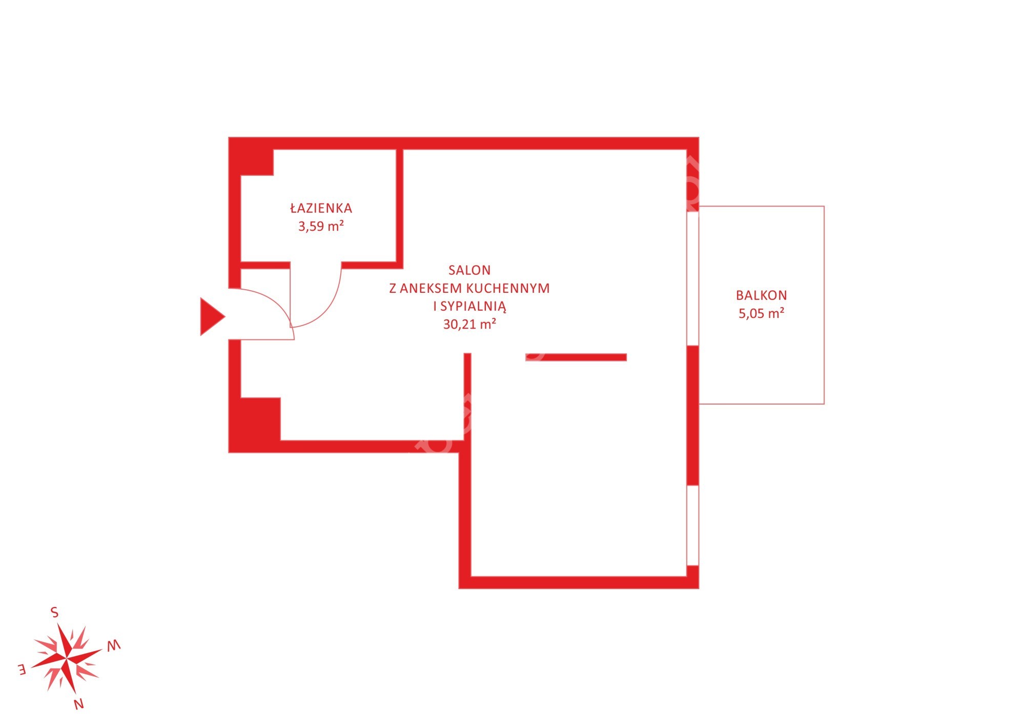 Nieruchomość o łącznej pow. użytkowej 33,80 m2 składa się z :