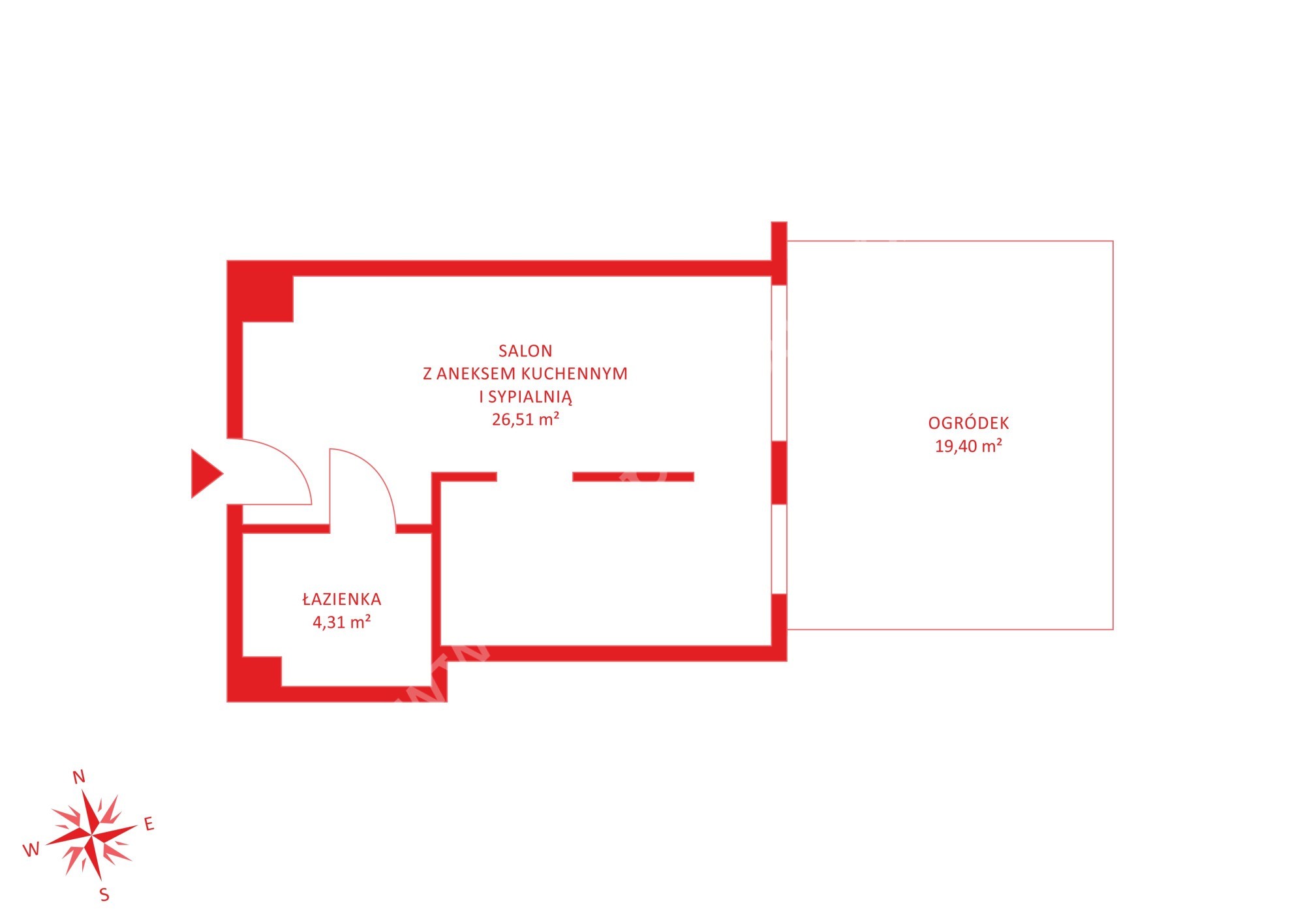 Nieruchomość o łącznej pow. użytkowej 30.82 m2 składa się z :