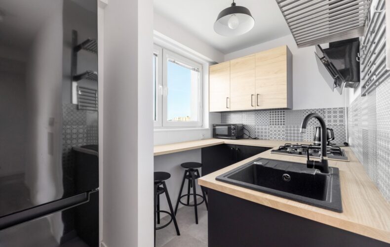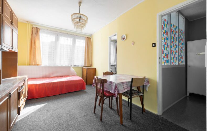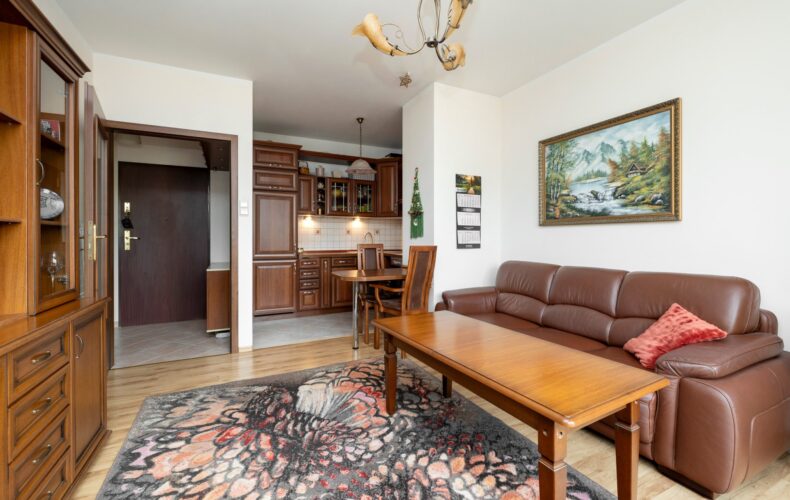 – salon z kuchnią 5,5m2 x 4,41m2 ( po remoncie w 2020r.) z wyjściem na dwustronny balkon