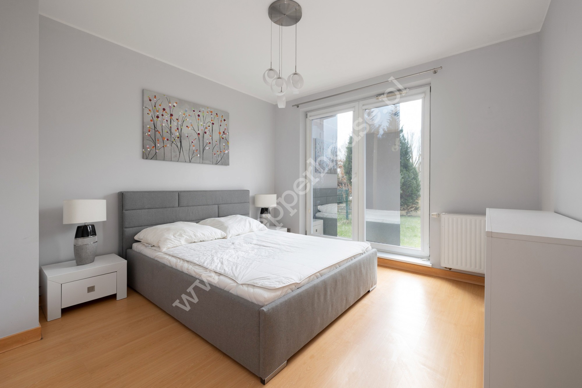 Z obu pokoi możemy wyjść na słoneczny ogród, stanowiący idealne miejsce relaksu po pracy.