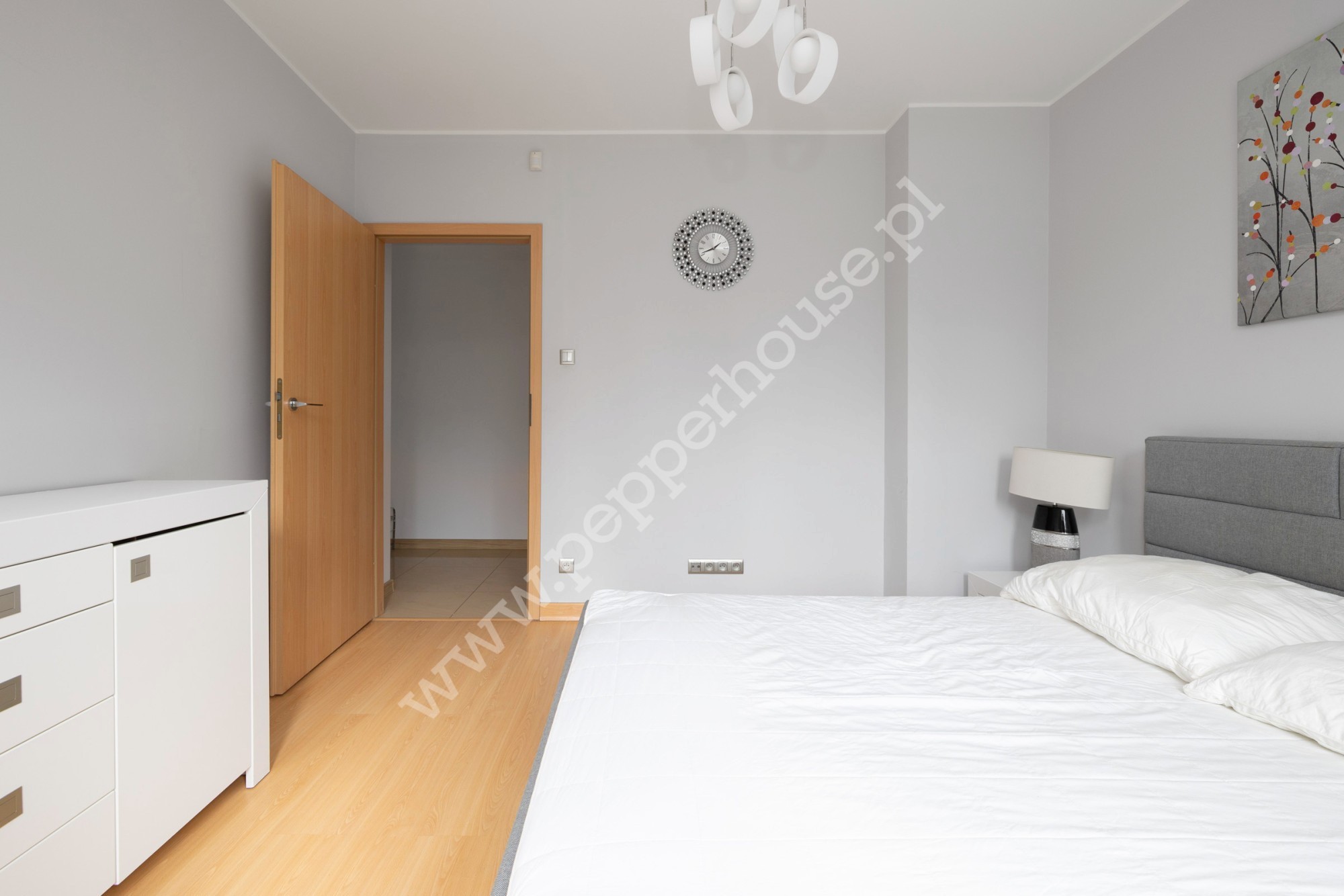 Lokal posiada wygodny i praktyczny układ pomieszczeń. W jego skład wchodzi przestronny salon, duża sypialnia, osobna kuchnia, łazienka wyposażona w wannę z funkcją prysznica oraz przedpokój z szafą w zabudowie.