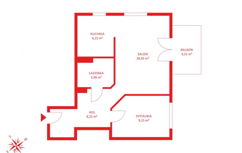 Na mieszkanie o powierzchni 46,5 m2 składa się z: