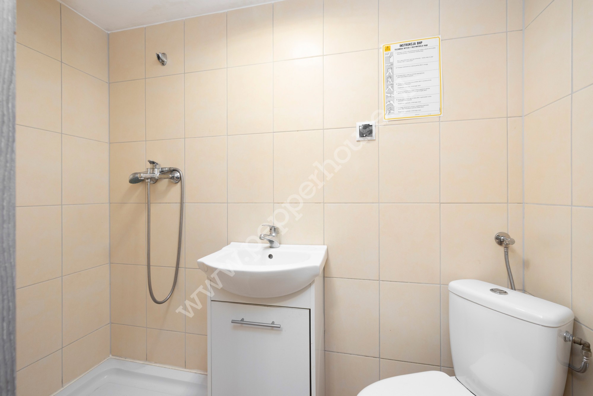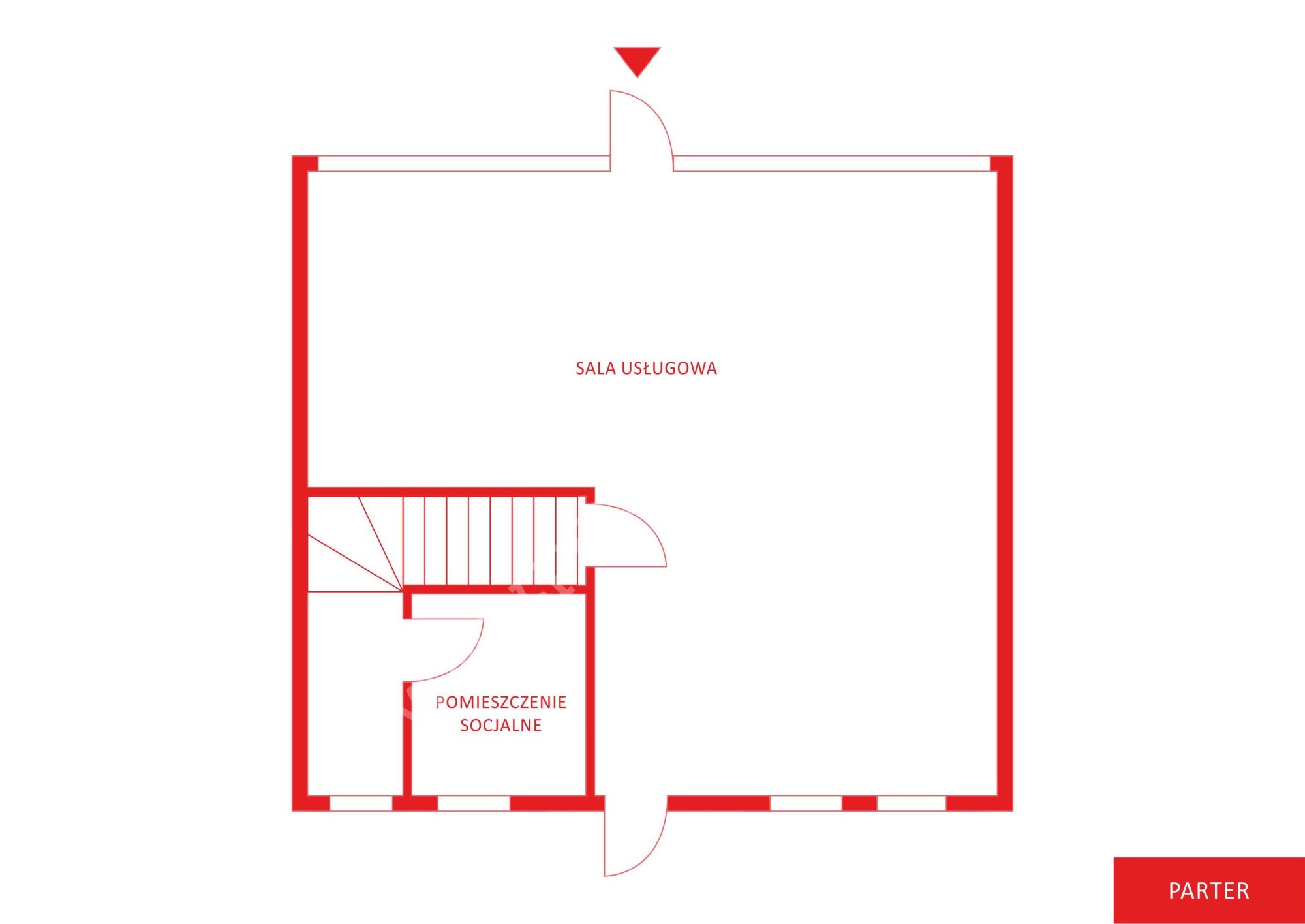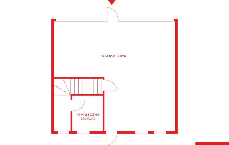 Na parterze (40,27 m2) znajdziemy sale usługową (35,03 m2), pomieszczenie socjalne (3,23 m2) oraz łazienkę (2,01 m2).