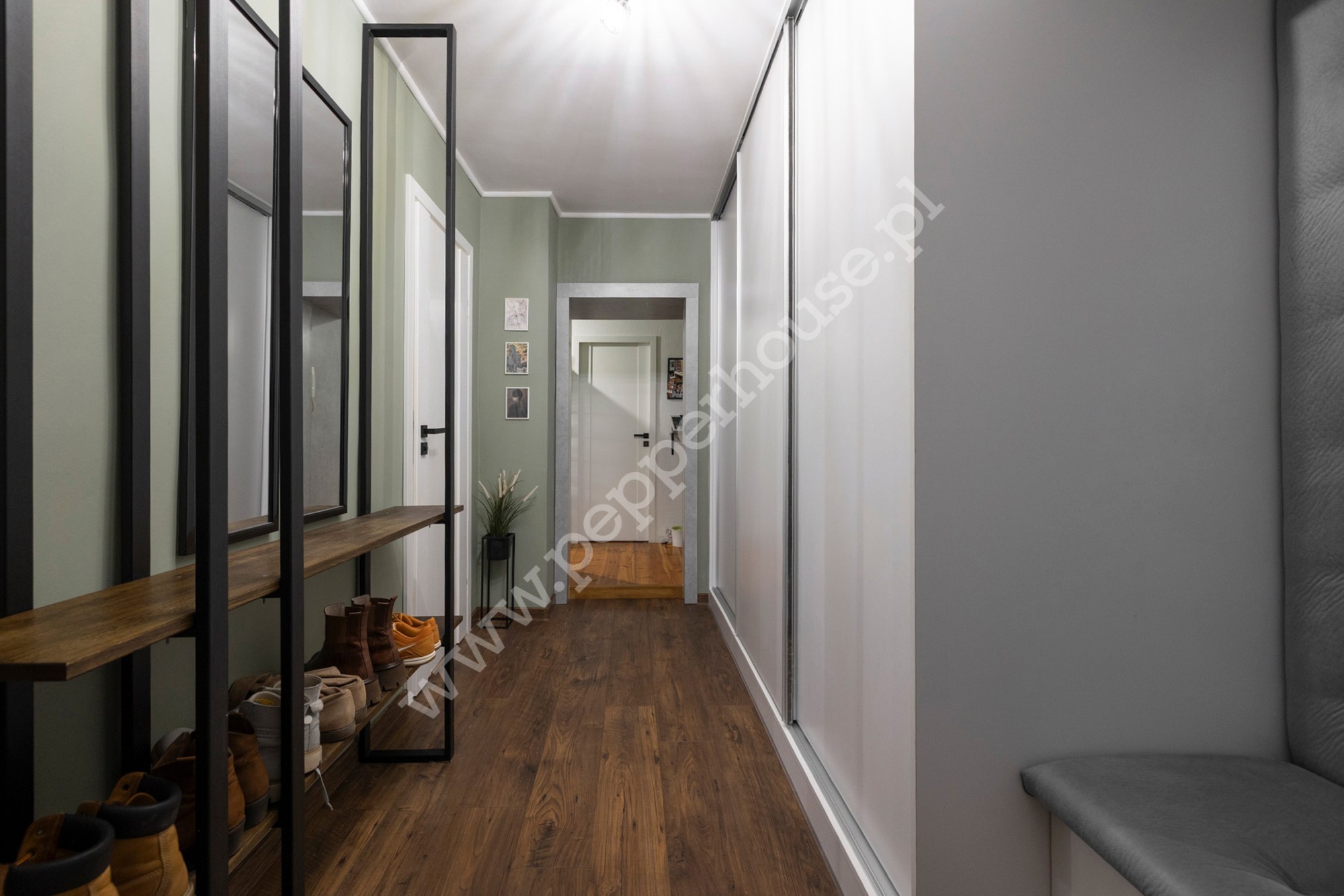 – korytarza z pełną, wykonaną na wymiar zabudową,