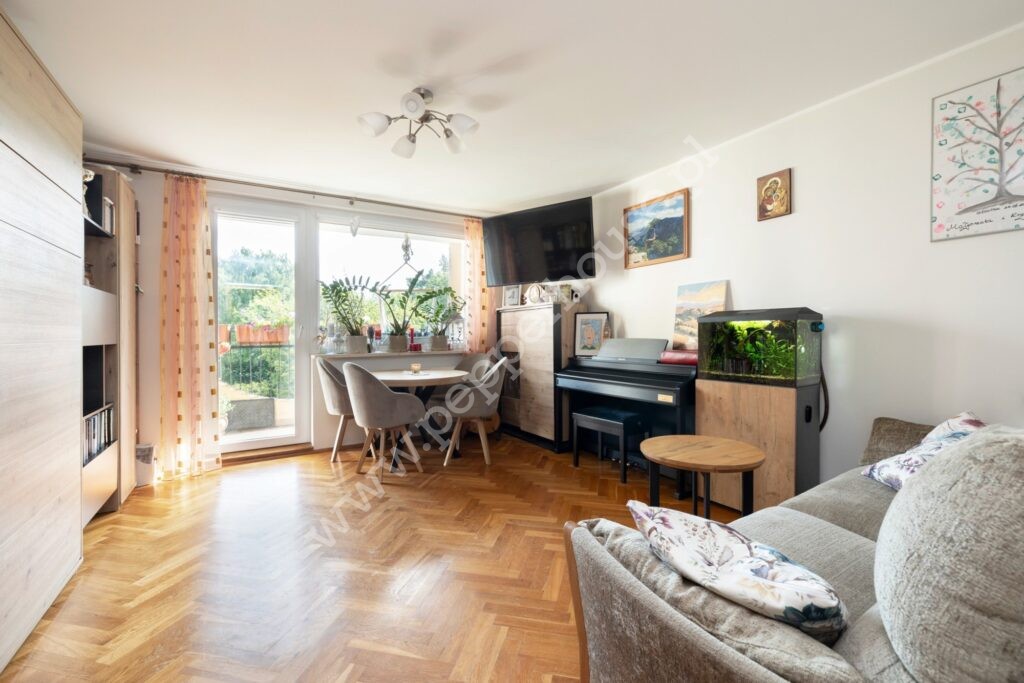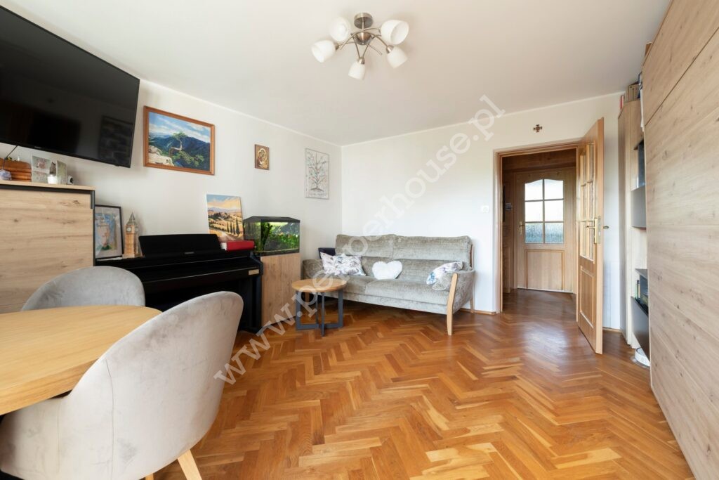 – przestronny salon z wyjściem na balkon,