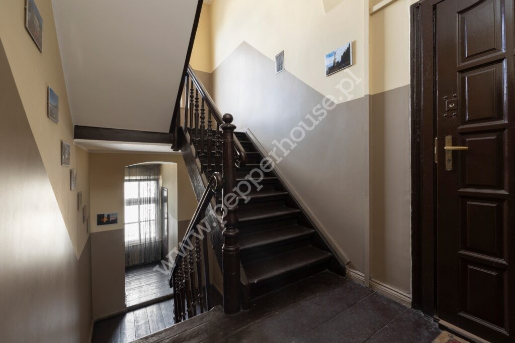 Mieszkanie znajduje się na drugim piętrze w trzypiętrowej kamienicy.