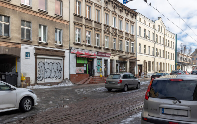 - przystanki tramwajowe i autobusowe w okolicy kamienicy,