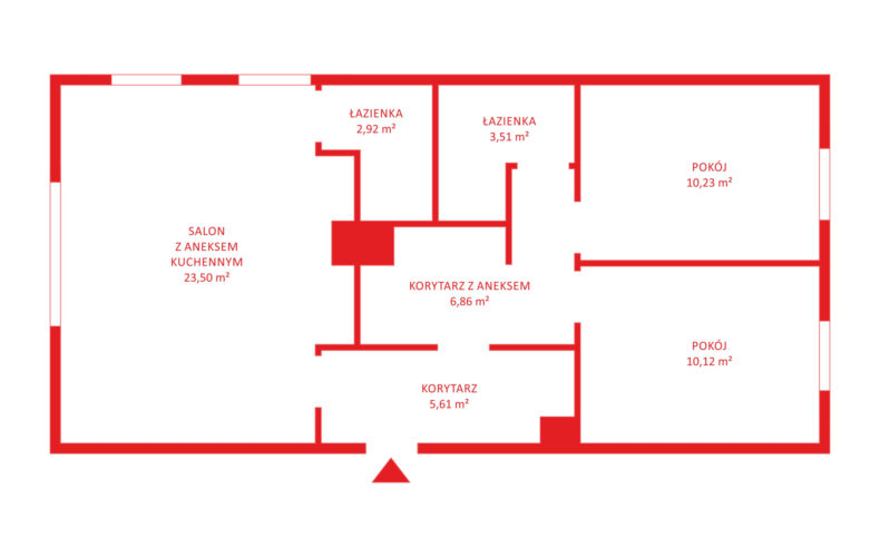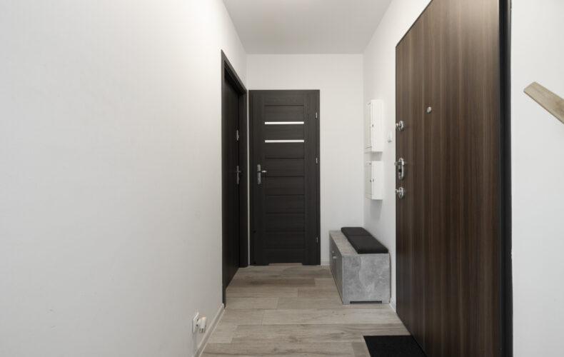 – łazienka z kabiną prysznicową.Wejście do obu lokali prowadzi z wspólnego korytarza, który stanowi oddzieloną przestrzeń tylko dla tych dwóch jednostek – rozwiązanie wygodne i bezpieczne zarówno dla najemców, jak i właściciela.