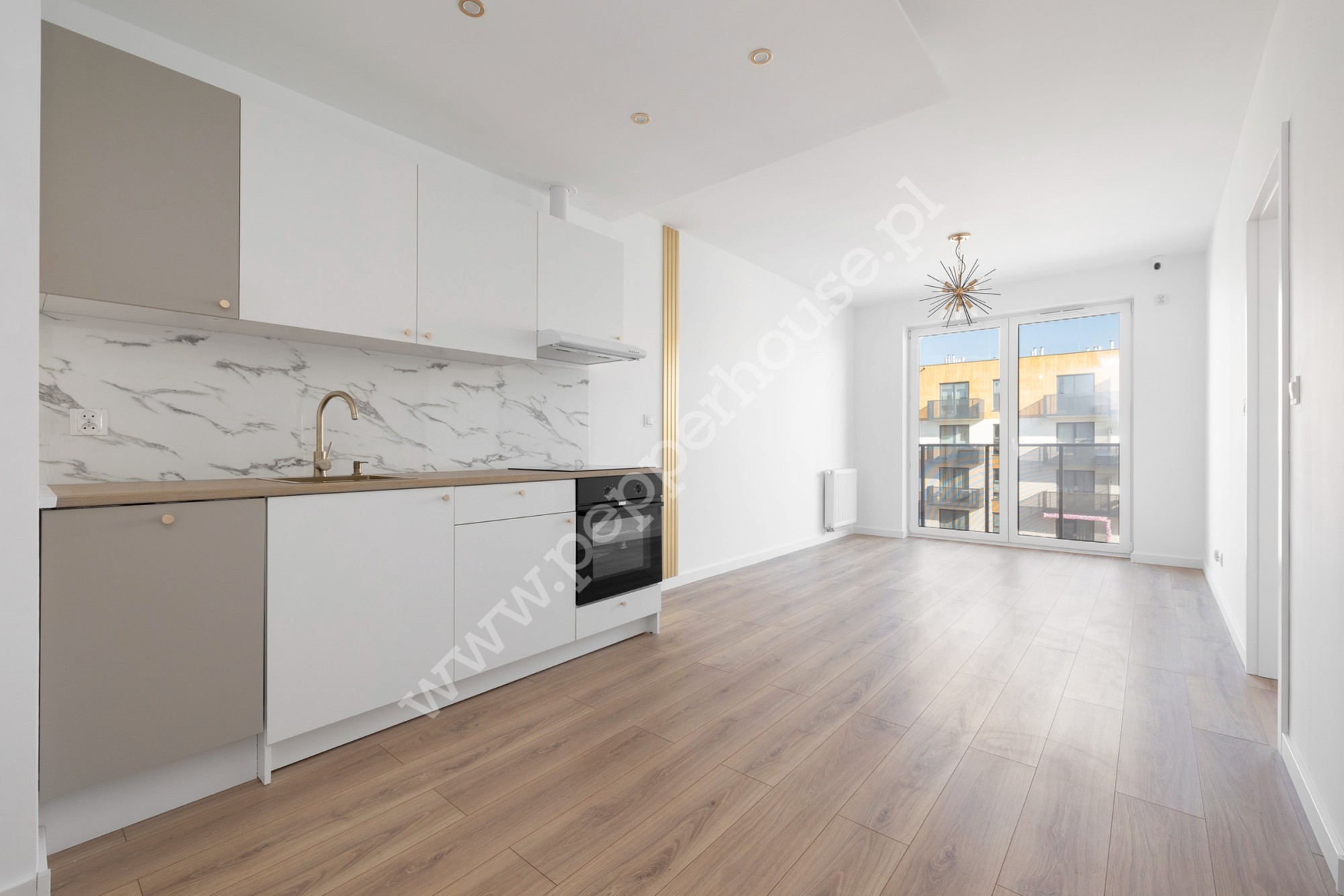 – salonu z aneksem kuchennym z wyjściem na balkon,