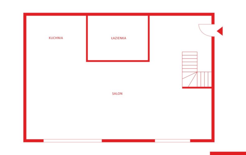 – salon z otwartą kuchnią wraz z wyjściem na balkon,