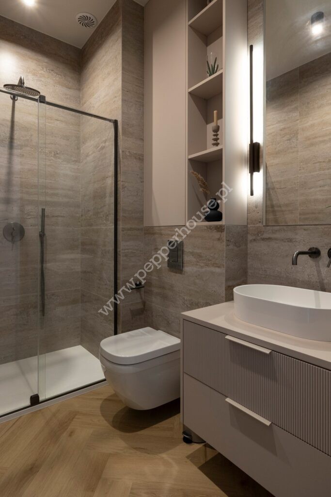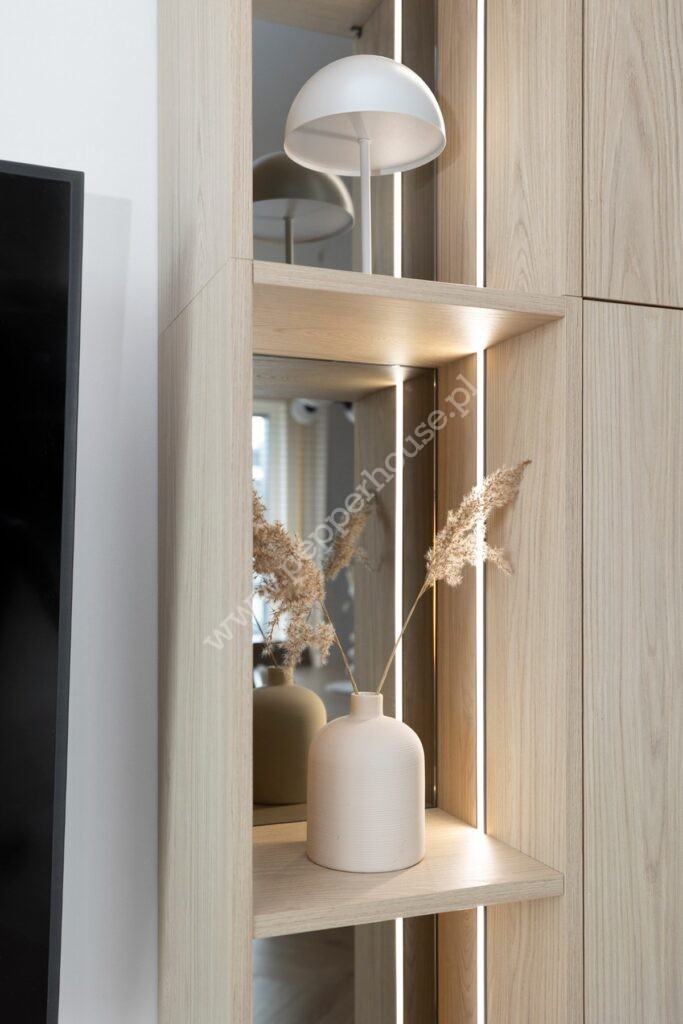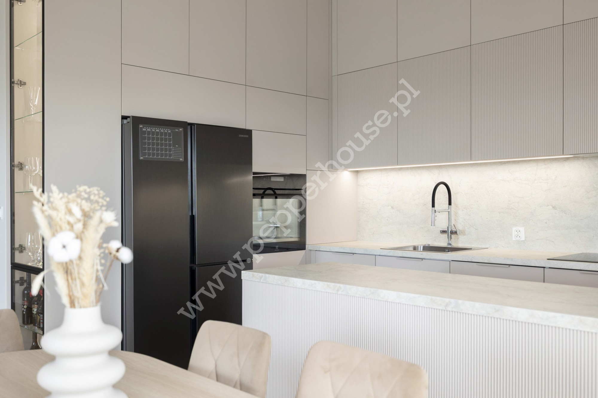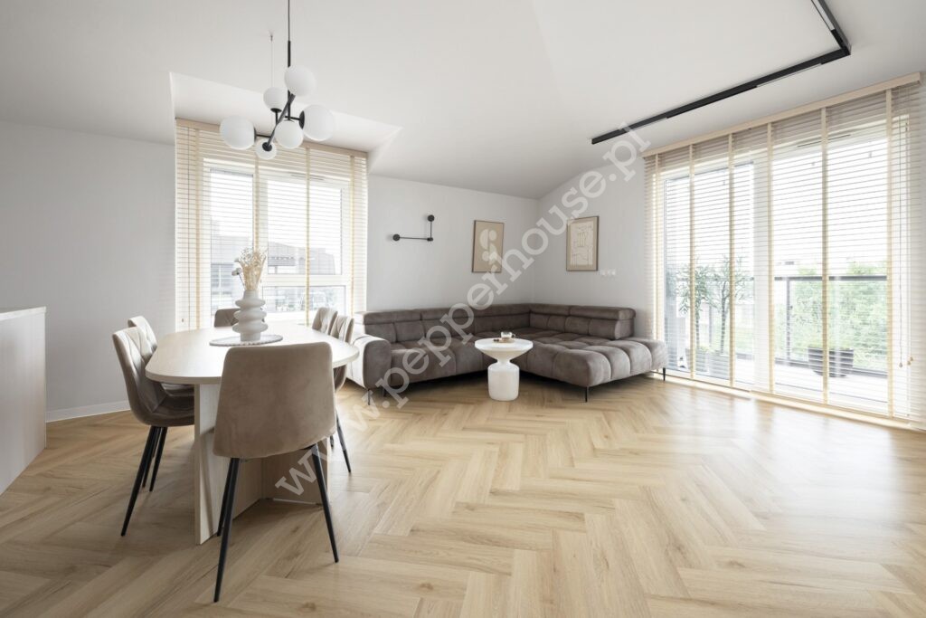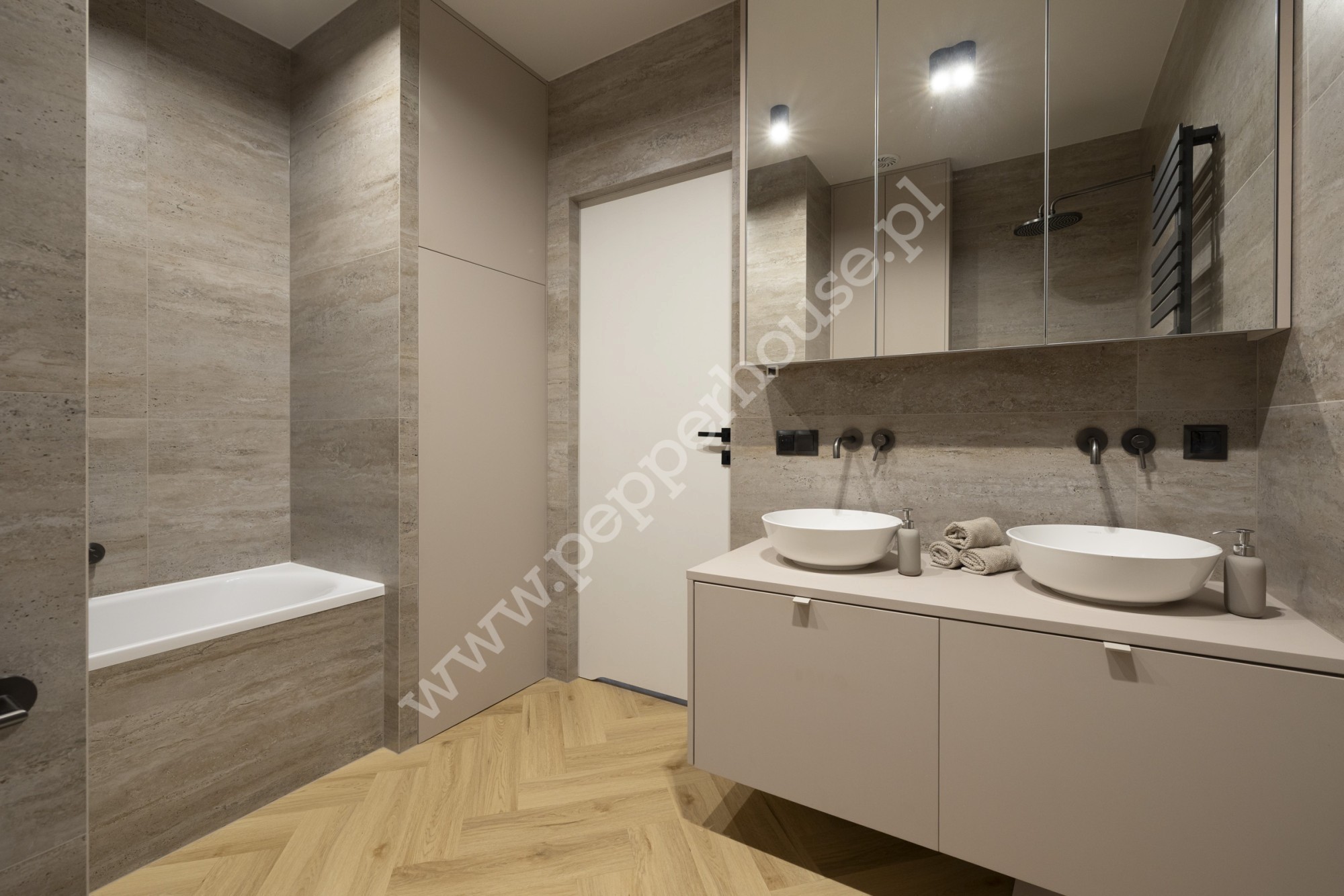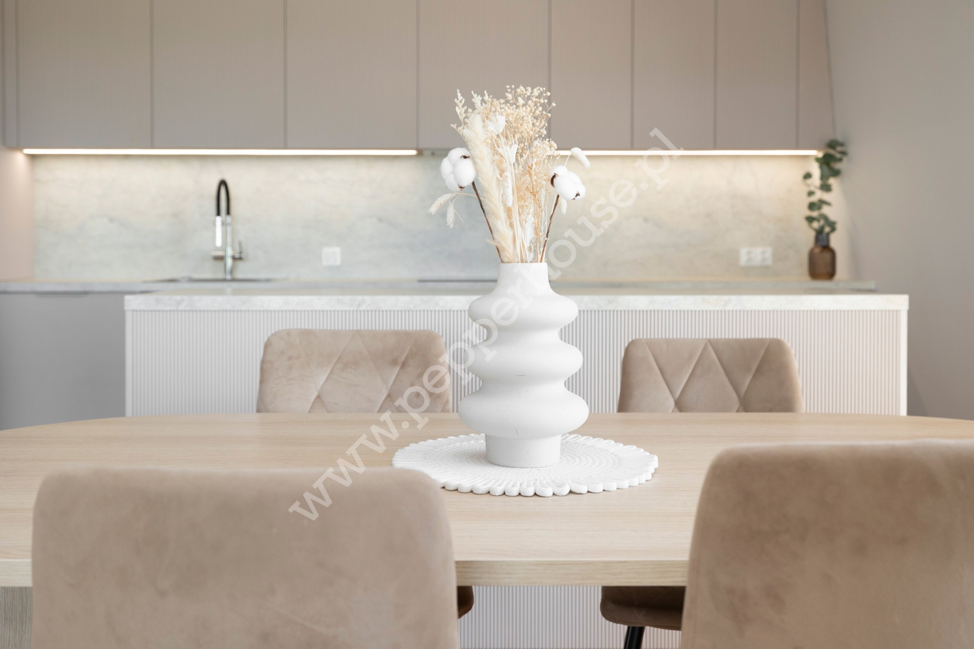 Wnętrza zaprojektowane zostały z myślą o osobach ceniących estetykę, jakość i funkcjonalność. Połączenie nowoczesnego minimalizmu z naturalnymi akcentami tworzy atmosferę elegancji i spokoju – to przestrzeń, w której można naprawdę odpocząć.