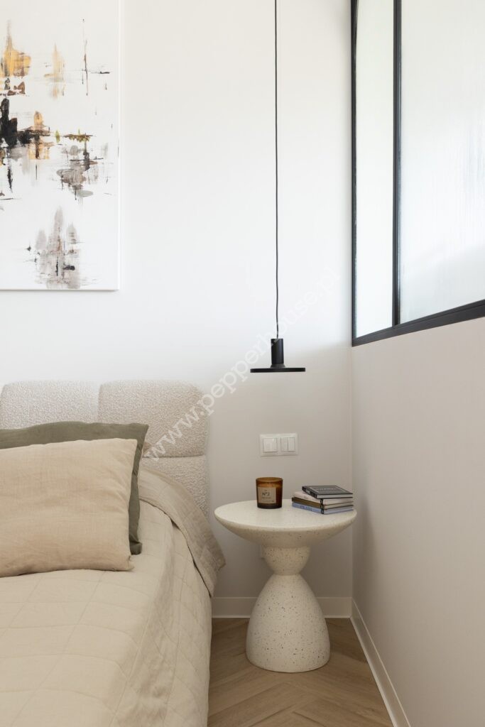 – Eleganckie detale architektoniczne – ukryte drzwi DRE o wysokości 220 cm, ściany w farbie Flugger zapewniającej trwałość i intensywny kolor.