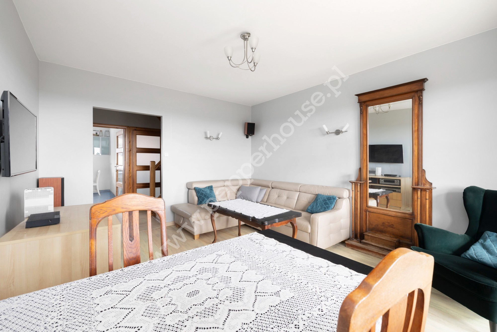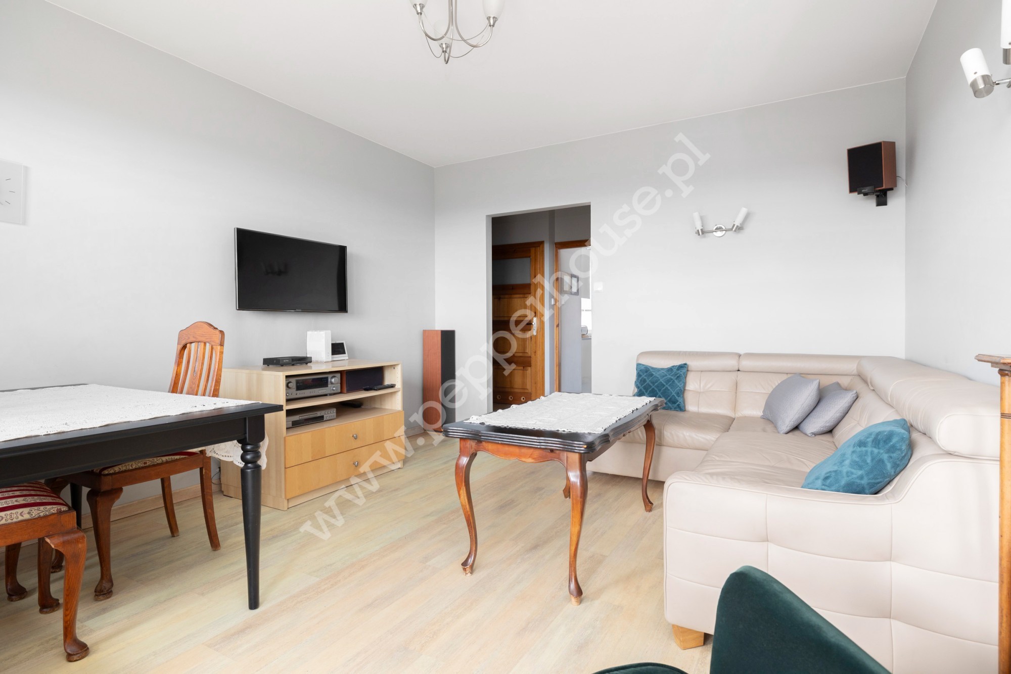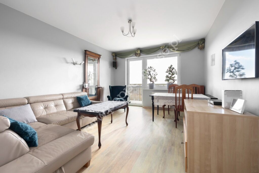 - jasny salon z wyjściem na duży, zadaszony balkon
