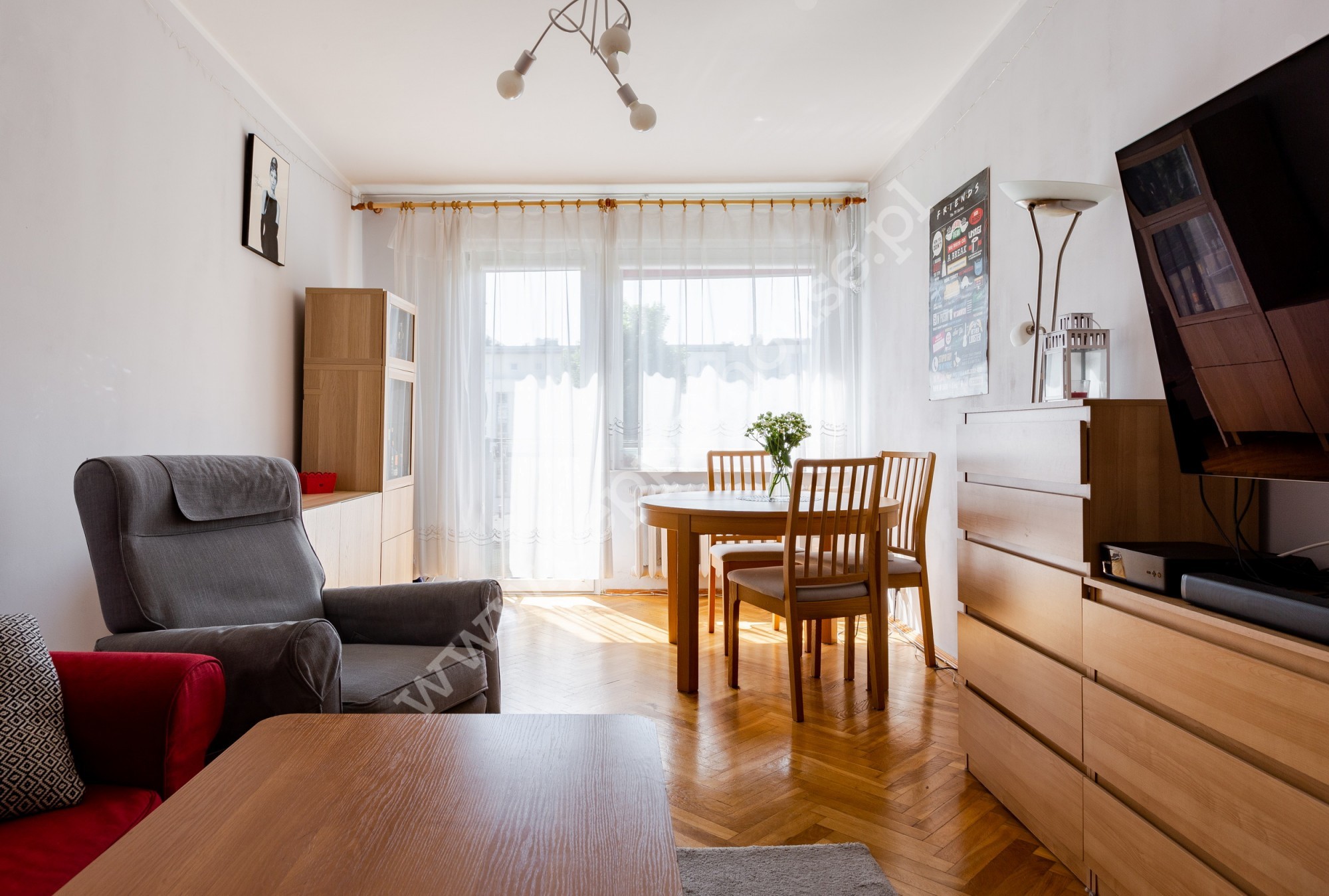 Słoneczne mieszkanie o łącznej powierzchni 45m2 znajduje się na ostatnim piętrze w czteropiętrowym budynku. Składa się z pokoju dziennego usytuowanego od południa ze słonecznym balkonem, sypialni , oddzielnej kuchni z oknem , łazienki i przedpokoju. Do mieszkania przynależy piwnica o powierzchni ok. 4m2. Czynsz kształtuje się na poziomie ok. 500 zł miesięcznie. Mieszkanie zadbane, do odświeżenia, możliwe wprowadzenie bez większych prac remontowych. Dużo ogólnodostępnych miejsca postojowych dla mieszkańców bloku.