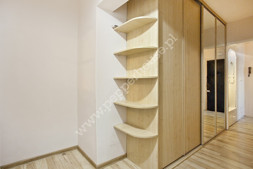 Lokal o powierzchni 38,87 m2 składa się z salonu (12m2) z małym balkonem (2m2), sypialni (10m2) łazienki (3,87) i przedpokoju (6m2) z dużą zabudowaną szafą. Mieszkanie posiada ekspozycję wschodnią, dlatego jest jasne od godzin porannych. Do mieszkania przynależy mała piwnica