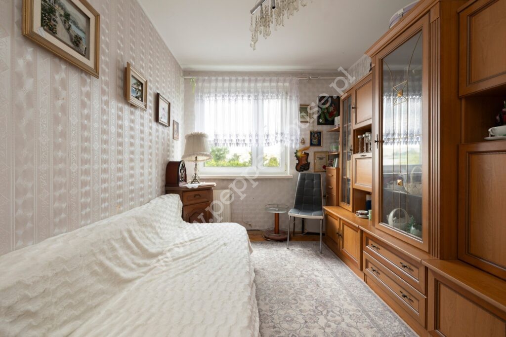 Słoneczne mieszkanie o łącznej powierzchni 43,0 mkw. znajduje się na czwartym piętrze w czteropiętrowym budynku. Składa się z sypialni, salonu z aneksem kuchennym z którego jest bezpośrednie wyjście na balkon, przedpokoju oraz łazienki z oknem.