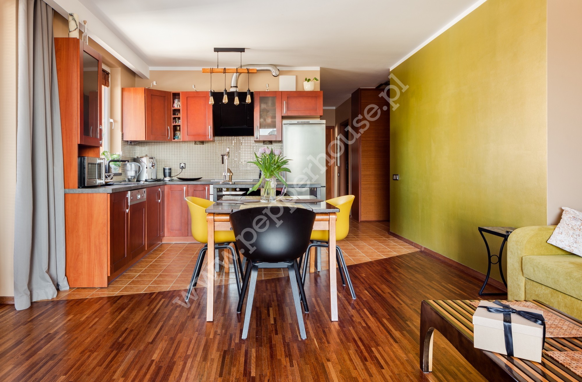 – salon z aneksem kuchennym + wykusz (32,1 m2)