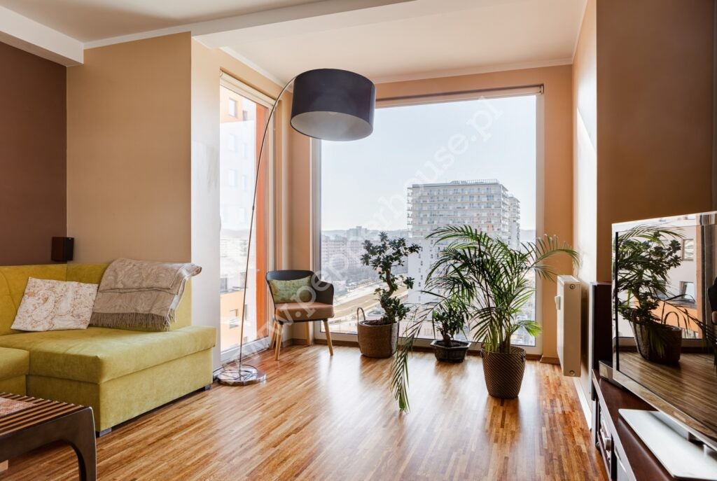 Nieprzeciętna forma budynku wpływa również na układ lokalu. Dzięki temu w mieszkaniu wydzielony został przeszklony wykusz dający właścicielom dostęp do południowo-zachodnich promieni słonecznych i przede wszystkim wyjątkowych widoków. Z balkonu rozpościera się widok na morze. Nieruchomość została wykończona w wysokim standardzie. Na podłogach w pokojach drewniana podłoga, która dzięki możliwości cyklinowania nadal wygląda jak nowa. Mieszkanie jest zadbane i gotowe do wejścia.