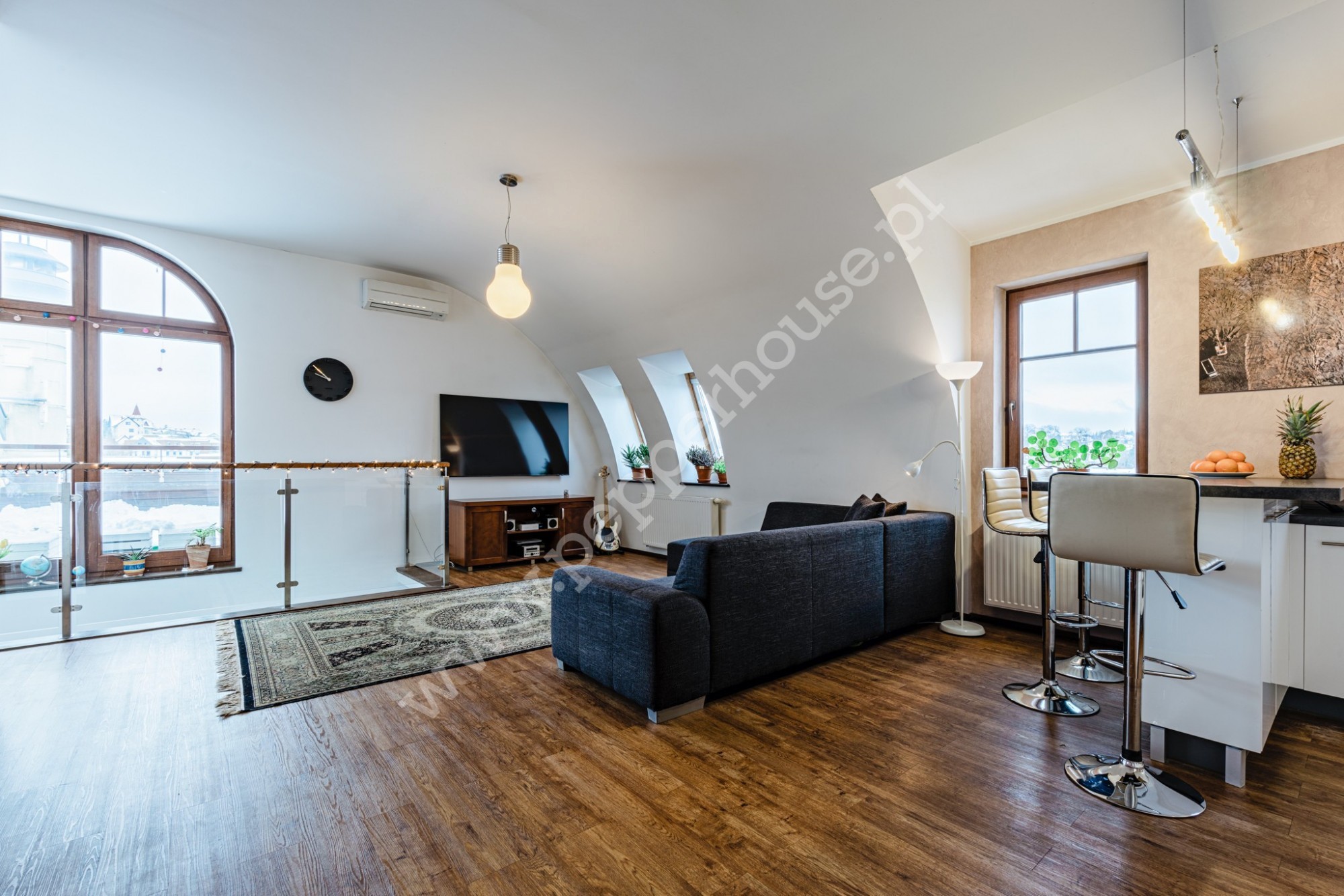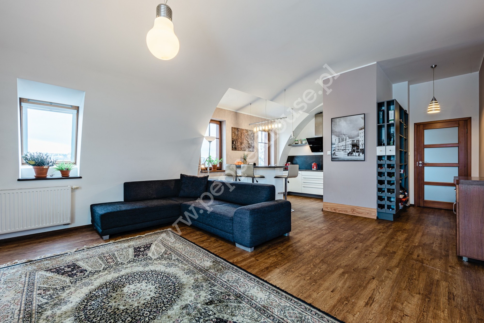 Apartament składa się z ogromnego salonu połączonego z aneksem kuchennym, dwóch sypialni i dwóch łazienek. Jego półkulisty kształt i ponadstandardowa wysokość bardzo mocno wypukla przestrzeń w tym lokalu. Z salonu wyjście na taras, na którym spędzimy mnóstwo czasu w ciepłej połowie roku. Do mieszkania przynależy komórka lokatorska (2,92m2) i dwa miejsca w kilkustanowiskowej hali garażowej (zakup obligatoryjny za 70 tys łącznie). Zapraszam na prezentację, żeby sami się Państwo przekonali o niepowtarzalności tego apartamentu:)
