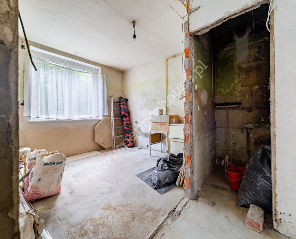 Lokal mieszkalny posiada 58 m2 powierzchni. Składa się z się z ustawnego salonu, kuchni, sypialni, miejsca przeznaczonego na łazienkę oraz oddzielnego WC. W budynku został wymieniony dach oraz osuszono oraz wyizolowano fundamenty. W mieszkaniu zostały wymienione częściowo instalacje elektryczne. Dwa pomieszczenia mają już wyrównane ściany, a WC jest przygotowana do kafelkowania. W budynku znajdują się przyłącze gazu. Mieszkanie jest dwustronne, wyeksponowane od południa na salon, dzięki czemu jest ciepłe, jasne i słoneczne.