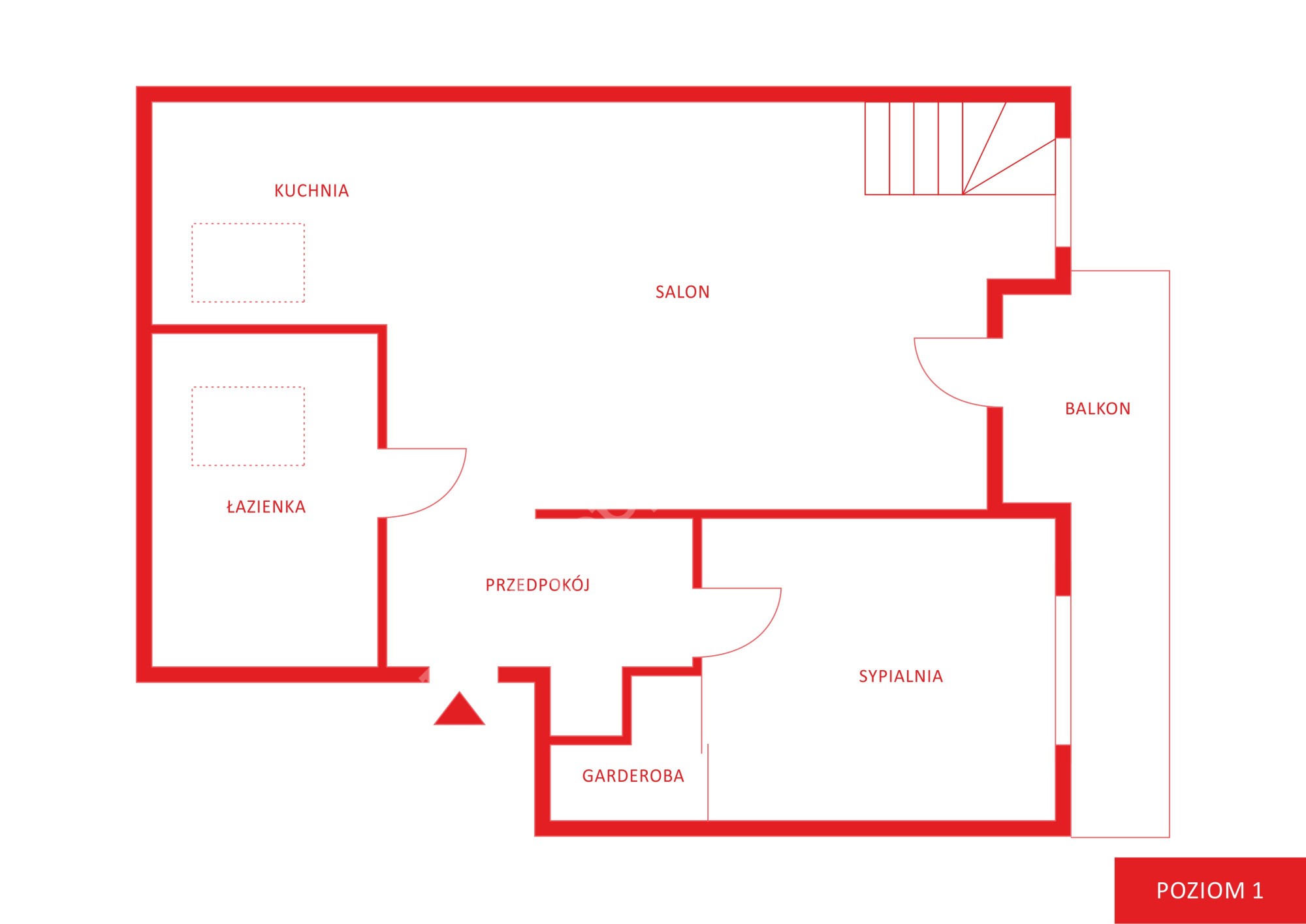 Nieruchomość wyróżnia się przestronnym układem pomieszczeń. Na pierwszym poziomie znajduje się część dzienna z salonem i wyjściem na duży, słoneczny balkon, aneksem sypialnianym, sypialnią (z garderobą), łazienką oraz przedpokojem (z małym pomieszczeniem gospodarczym). Drugi poziom stanowi antresola wraz z dodatkowym pokojem, który może pełnić funkcję sypialni, gabinetu lub komfortowej przestrzeni do pracy. Do tej przestrzeni została doprowadzona woda i kanalizacja, dzięki czemu można zrobić dodatkową łazienkę na górze.