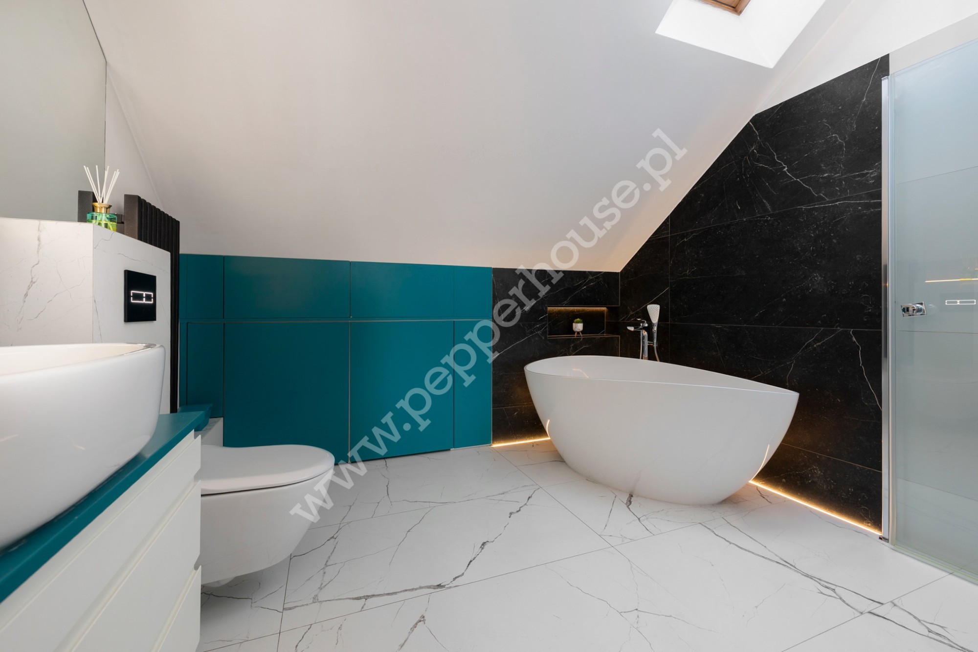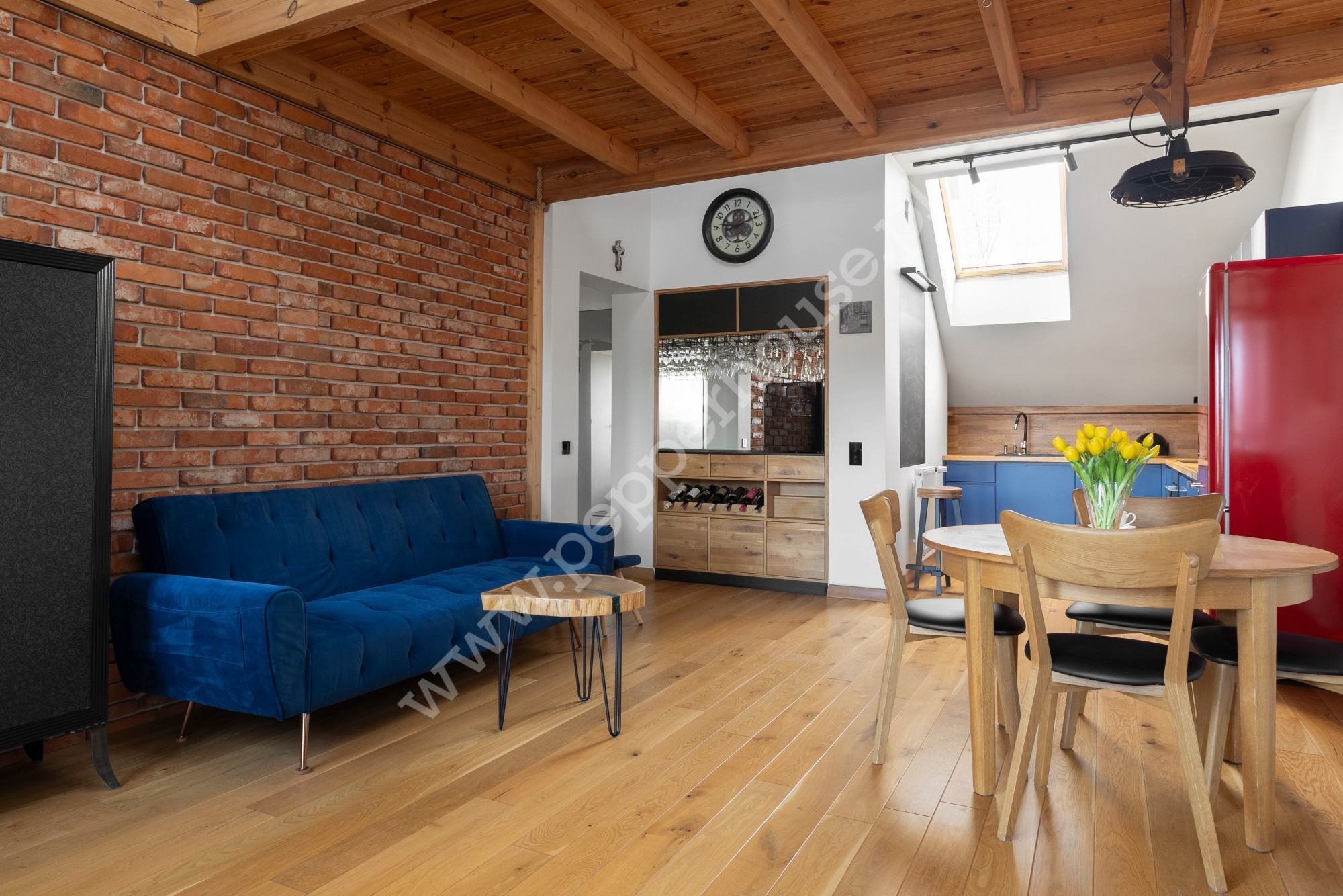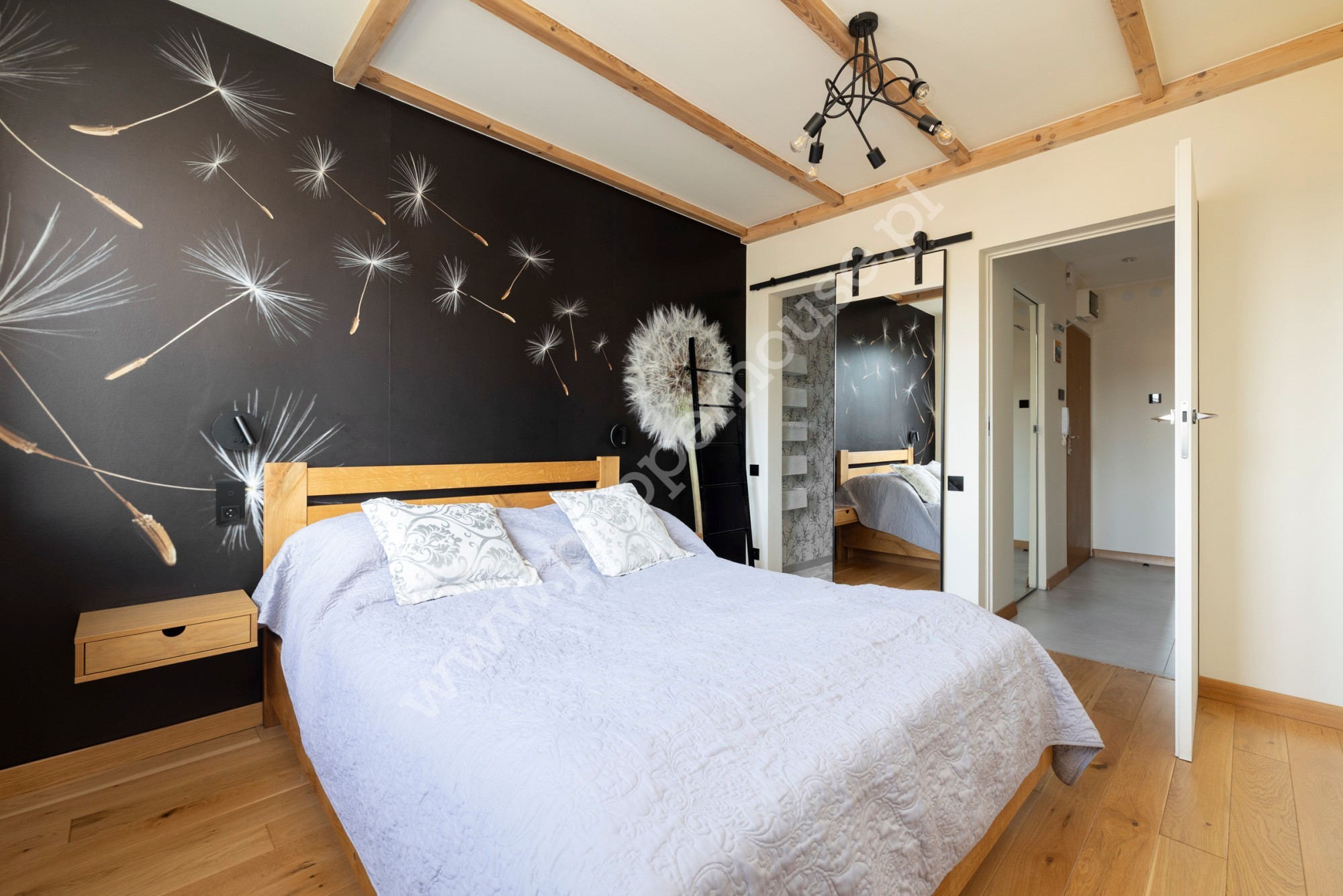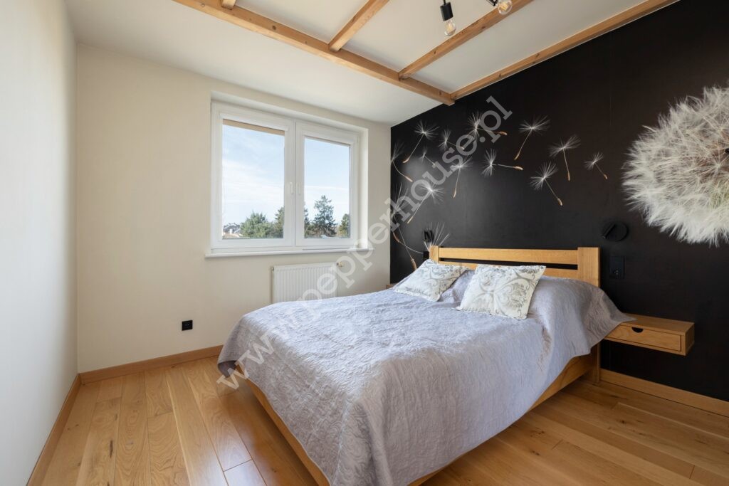 Całość została wykonana w wysokim standardzie, z dbałością o detale oraz komfort codziennego użytkowania. Na podłogach znajdziemy deskę barlinecką, a łazienka wykończona jest włoskimi kaflami oraz wyposażona jest w armaturę firmy Villeroy-Boch i wannę wolnostojąca oraz prysznic. Wnętrze jest zadbane i w pełni przygotowane do zamieszkania, a niepowtarzalnego klimatu dodaje oświetlenie LED.
