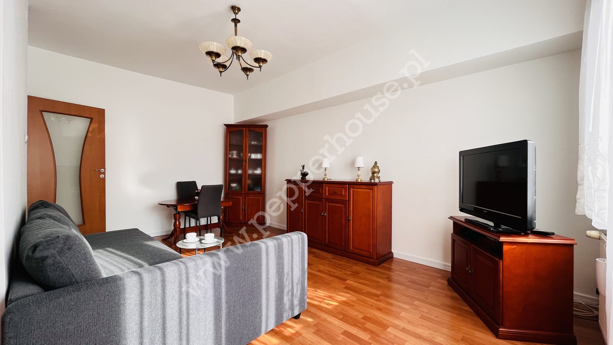 – salon z wyjściem na słoneczny balkon,