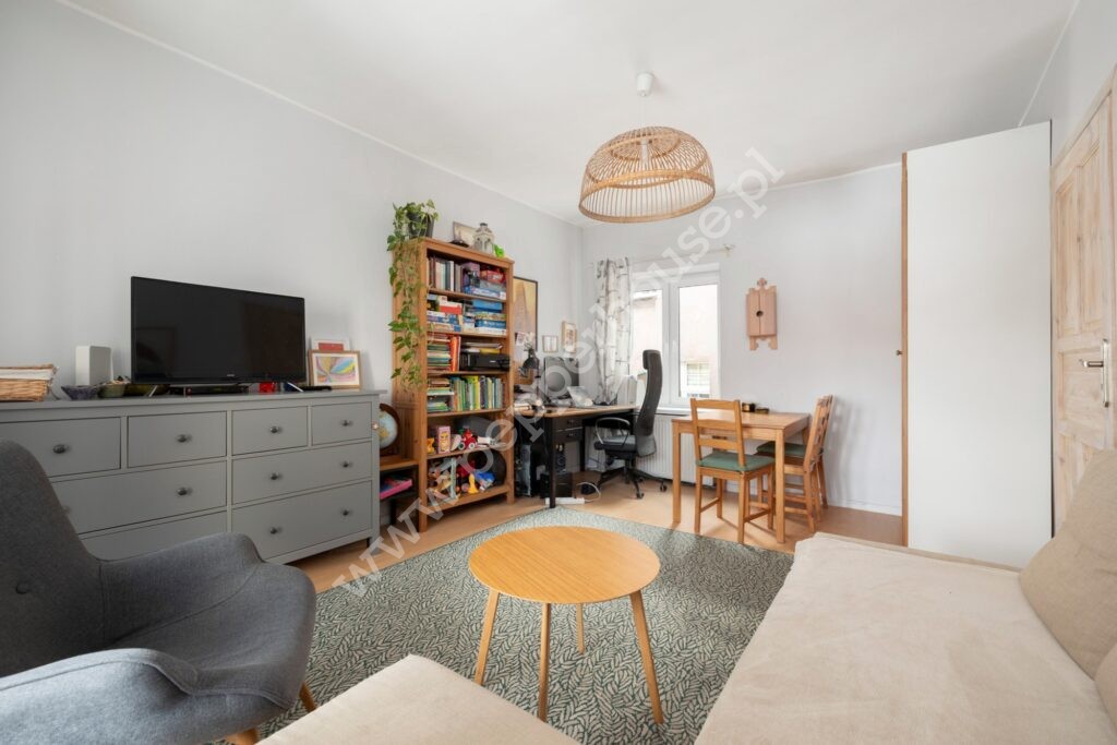Układ pomieszczeń obejmuje przestronny pokój główny z możliwością podziału na dwa mniejsze pokoje, dodatkowy pokój, osobną kuchnię, przedpokój, łazienkę oraz werandę, która doskonale sprawdzi się jako strefa relaksu, jadalnia lub domowe biuro. Dodatkowym atutem są trzy pojemne wnęki ścienne, pełniące funkcję praktycznych schowków lub zabudowy.
