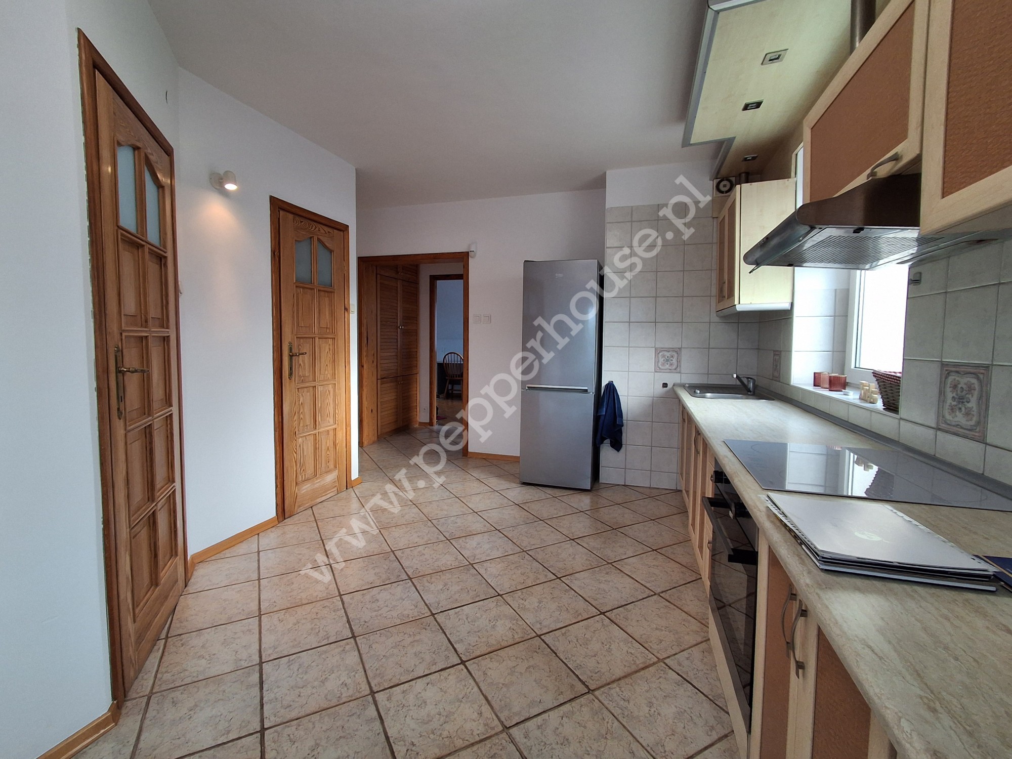 - kuchnia wyposażona w płytę elektryczną, piekarnik i lodówkę,