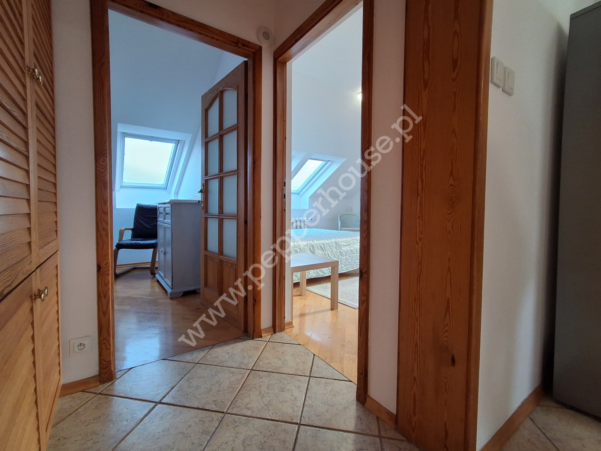 - okna PCV oraz okna dachowe Velux (skosy w sypialniach i kuchni),