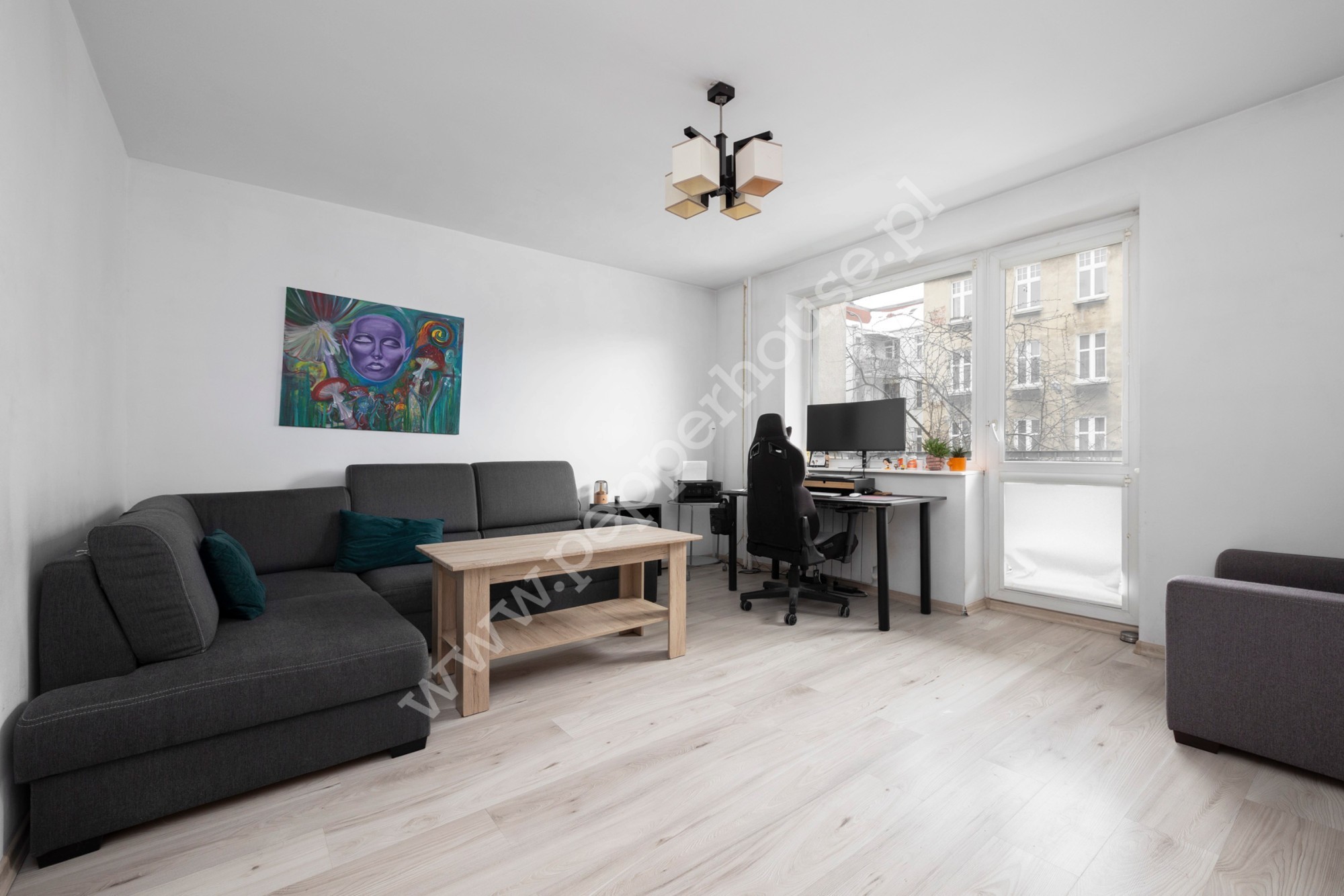 – jasny pokój dzienny z wyjściem na słoneczny balkon,
