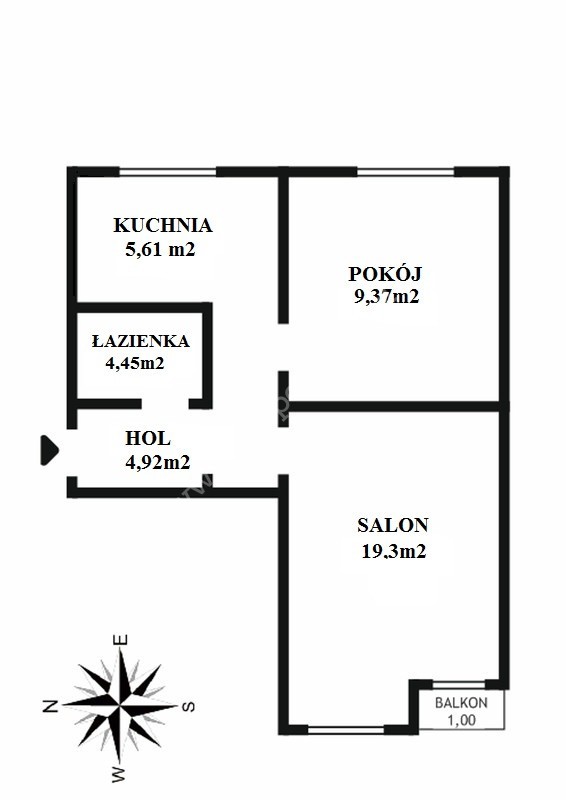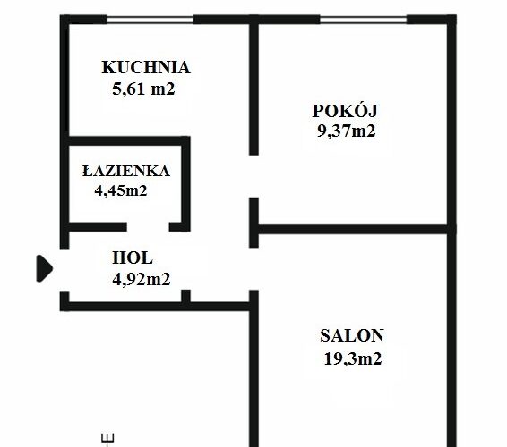 Sam lokal składa się z salonu o powierzchni 19,3m2, oddzielnej sypialni 9,37m2, jasnej kuchni o powierzchni 5,61 m2 oraz łazienki o powierzchni 4,45 m2.