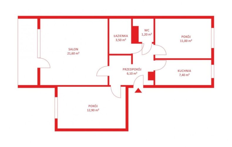 Na powierzchnię mieszkania wynoszącą 64,60 m2 składają się: