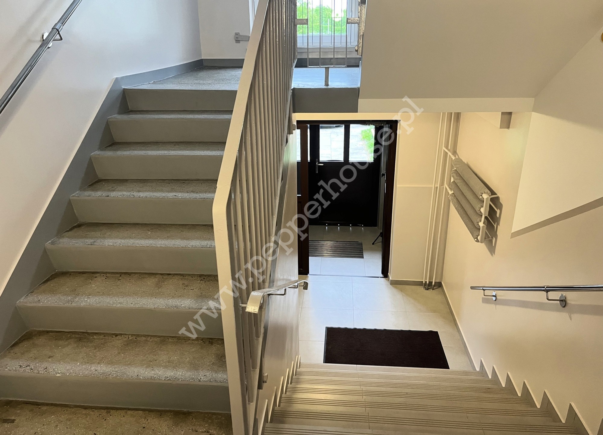 Przed blokiem znajduje się parking, tylko dla mieszkańców – za szlabanem.