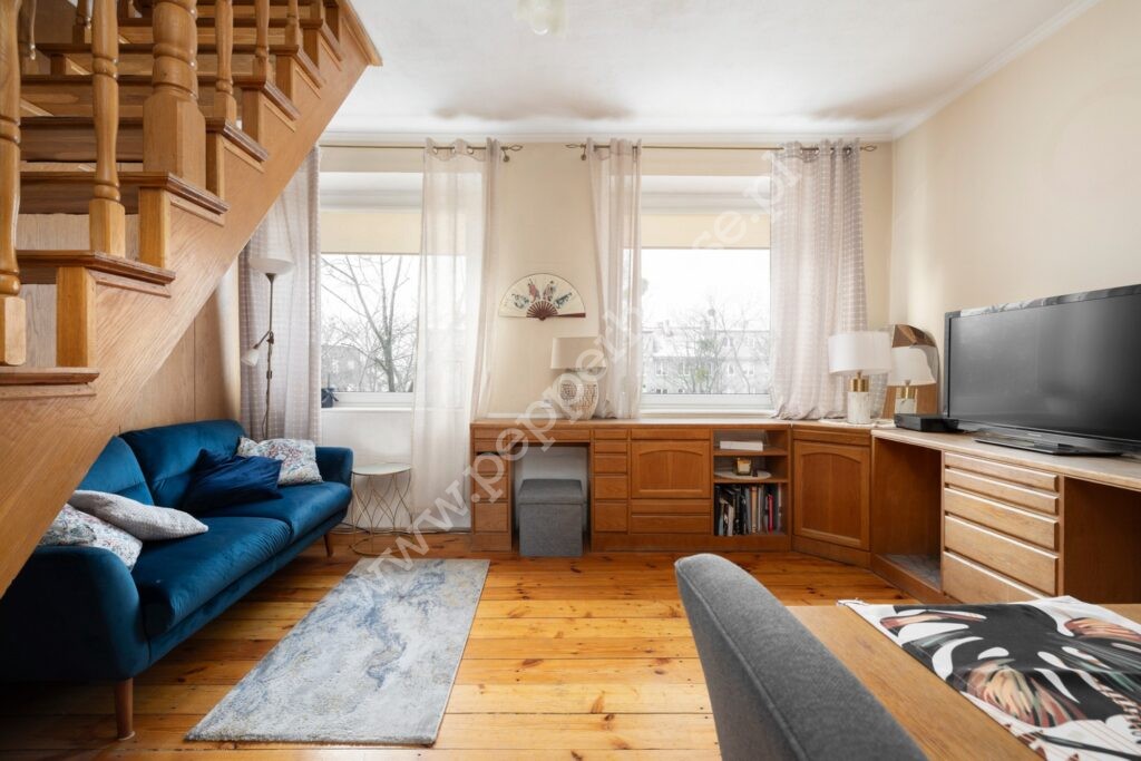 Na sprzedaż unikatowe, dwupoziomowe mieszkanie o powierzchni 90,5 m², położone na 2. i 3. piętrze klimatycznej kamienicy z lat 30., przy al. Legionów 27 w Gdańsku Wrzeszczu.