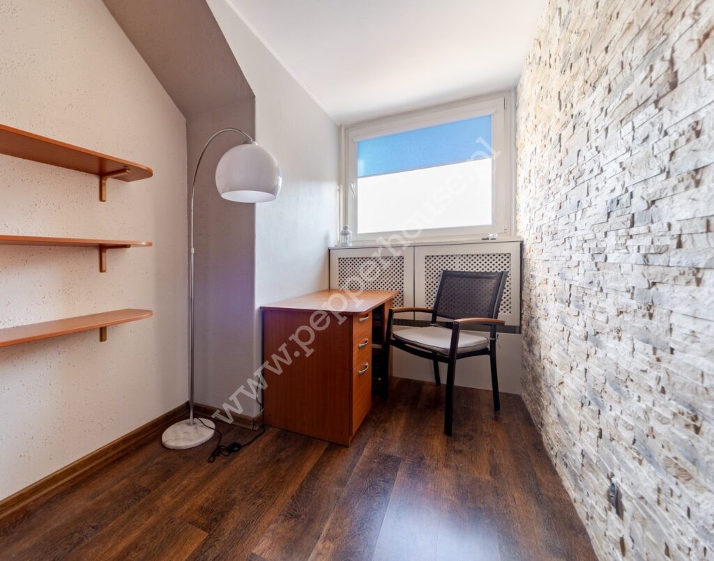 Oferowana nieruchomość jest jasna i przestronna. Dzięki dwustronnej ekspozycji promienie słoneczne wypełniają wnętrze praktycznie przez cały dzień. Mieszkanie jest po kapitalnym remoncie. Okna nowe PCV. Dużym atutem mieszkania jest możliwość dalszej aranżacji wnętrza – w przystępny sposób można wydzielić trzecią sypialnię. Istnieje także możliwość adaptacji poddasza, zyskując dodatkową powierzchnię po podłodze ok. 50 m2. W lokalu zmontowano instalację alarmową.