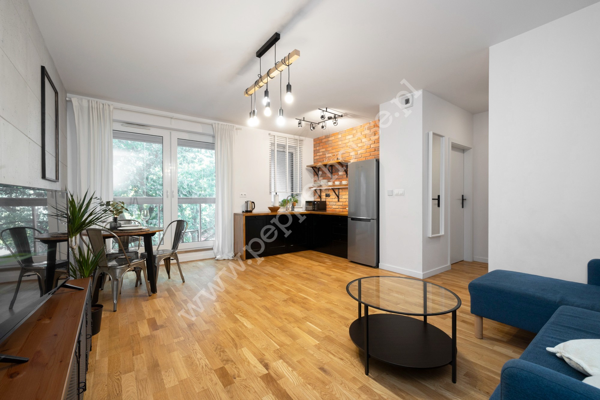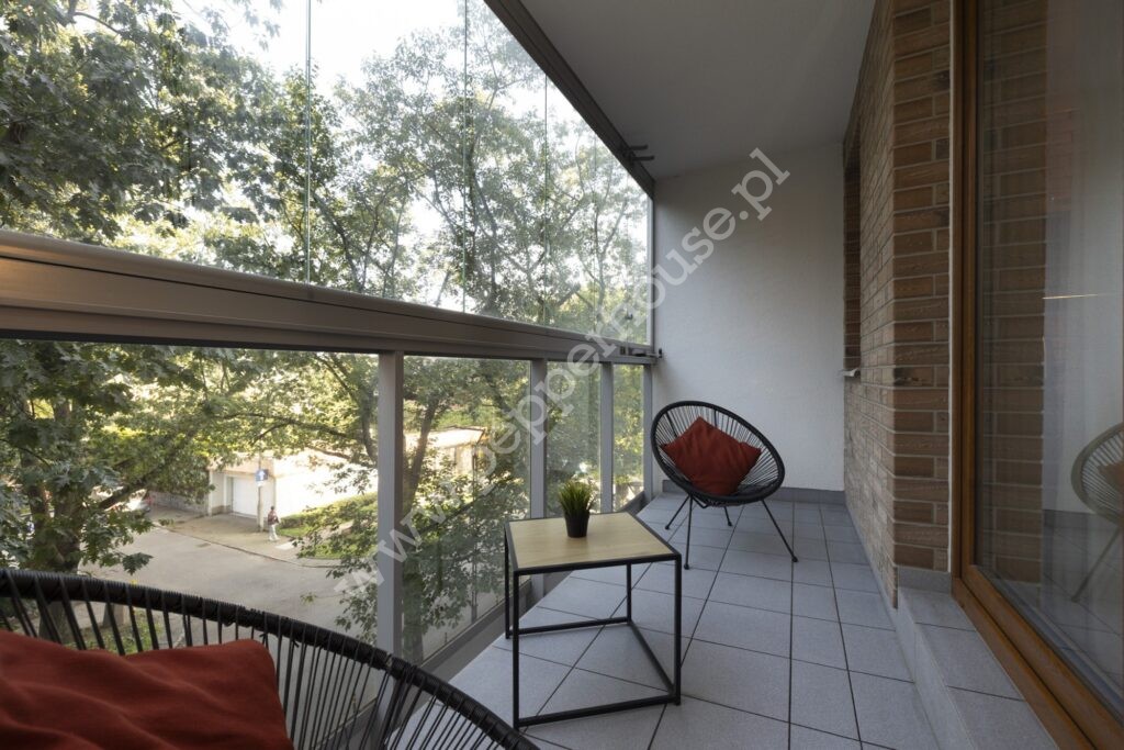 - klimatyczny salon z wyjściem na loggię z przesuwnymi szybami,